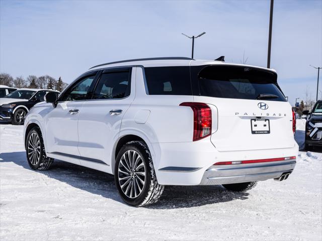TOP FEATURES INCLUDE - Ventilated seats Heads-up display Nappa leather seats & MORE! You know what they say about pre-owned cars - PREVIOUS CUSTOMERS DEPRECIATION IS YOUR APPRECIATION. Our Palisade has a CLEAN CARFAX with no accidents and full serviced history. A luxurious and fully loaded 2025 Hyundai Palisade Ultimate Calligraphy offering top-tier comfort advanced technology and refined style in a spacious three-row SUV. Powered by a smooth 3.8L V6 it delivers confident performance while the premium interior features quilted Nappa leather a 12.3-inch digital cluster heated/ventilated seats in both front and second rows a head-up display and a dual-pane sunroof. With its bold Calligraphy exclusive design elements abundant safety features and exceptional overall condition this Palisade represents one of the best values in the luxury SUV segment. This Palisade is eligible for a Hyundai Certified Pre-Owned Warranty Upgrade! By adding extended warranty it receives an elevated 165 point CPO inspection over the standard government safety inspection for added peace of mind. By upgrading this warranty your pre-owned finance may qualify for a finance rate starting as low as 5.49%. Premium Plus Warranty Options include: - Premium Plus CPO up to 8 year or 160k kms standard Powertrain warranty - Premium Plus CPO up to 8 year or 160k kms full Comprehensive Warranty Please call for more information! Main Key Features on this Palisade includes the following options below: Performance Features: - 3.8L GDI V6 engine with idle start-stop (291 horsepower 262 lb.-ft. torque) - 8-speed automatic transmission with SHIFTRONIC paddle shifters - Button-type shift-by-wire - HTRAC All-Wheel Drive with multi-terrain control modes - Auto-levelling rear suspension Exterior features: - 20'' alloy wheels - LED tail lights - Rain-sensing windshield wipers - Puddle lamps - Smart power liftgate Interior features: - Leather seating surfaces - Moonroof - 12.3'' full digital instrument cluster - Drivers seat 4-way power lumbar support - Surround view monitor - Ventilated front seats - LED interior lighting - In-vehicle intercom system Safety features: - Blind-Spot Collision-Avoidance Assist - Rear Cross-Traffic Collision-Avoidance Assist - Safe Exit Assist - Ultrasonic Rear Occupant Alert - Power child locks - Blind View Monitor - Parking Distance Warning Front - Navigation-based Adaptive Cruise Control In Addition this Vehicle was: - Fully Inspected & Approved by our Certified Hyundai/Genesis Technicians - Extensive mechanical & appearance reconditioning process - Full Tank of Gas COMPETITIVE FINANCE RATES ARE AVAILABLE. WE PAY TOP DOLLAR FOR TRADE-INS Contact us now to book a test drive. One of our friendly and knowledgeable representatives will be happy to help! From out of town? Book a Live Video Call Appointment and we will show you the vehicle from all angles while answering your questions in real-time. *Come to see How Maple Hyundai is changing the Way GTA buys Cars*