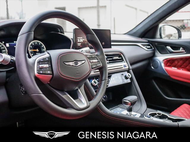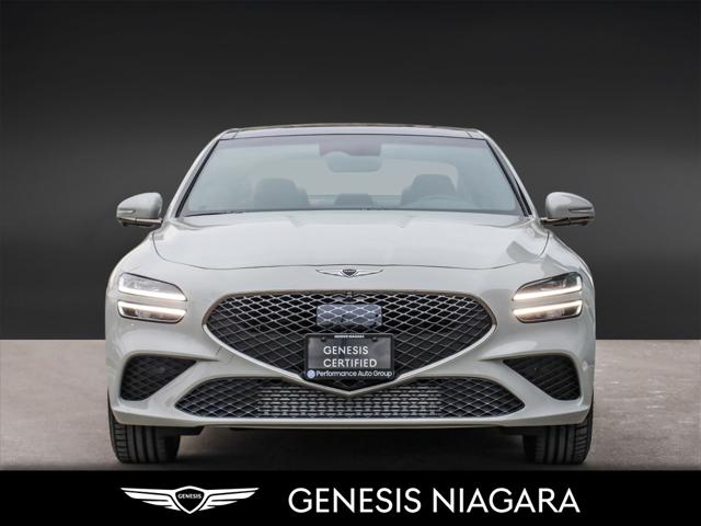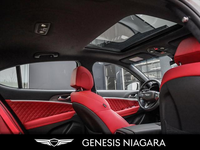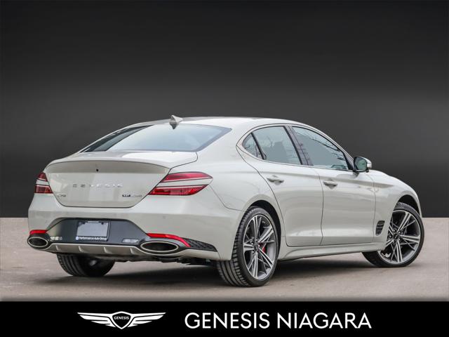This 2025 G70 3.3T represents great value in a sports sedan with plenty of power and features that include. - Front and Rear parking assistance sensors - Rain-sensing wipers - Power-folding auto-dimming heated side mirrors with Genesis logo puddle lamps - Power tilt-and-telescopic steering column - Drivers Integrated Memory System + Power Driver and Passenger seat adjustment - Ventilated front seats heated rear seats - Wireless charging pad - 15-speaker Lexicon surround sound audio system - Dual exhaust system with oval outlets - 16-way Power Driver Seat including Power Side Bolster & Cushion Extension - Head-Up Display (HUD) - Power trunk lid - 3.3L twin-turbocharged V6 engine with 365hp and 376 lb. ft. of torque - Variable Gear Ratio (VGR) steering rack - Sport-tuned Electronically Control Suspension - Limited Slip Differential (LSD) - Brembo braking system - Nappa leather seating surfaces with sport quilting - Microfibre suede headliner - Sport 19'' aluminum alloy wheels with high-performance summer tires - Alloy pedals - Variable Exhaust Valve - Surround view monitor with Blind Spot View Monitor - Front passenger seat walk-in device - Acoustic Laminated Glass (Front) We are confident your shopping experience with us will be a luxury experience with our ''no pressure'' sales team who are here to help you make the right choice. We are conveniently located at 342 Ontario Street in St.Catharines right off the QEW. We look forward to having you here and experiencing the Genesis difference. **Free Carproof online! Specialist onsite for all credit approvals!*