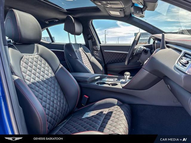 Our G70's trim level is 3.3T Sport. The interior radiates athletic luxury with deeply contoured Nappa leather sport seats featuring quilting and ventilation a sunroof a heated leather steering wheel and a suede headliner that heightens the sense of refinement. A 10.25-inch navigation touchscreen with split-screen capability anchors the cabin seamlessly integrating Apple CarPlay Android Auto and Genesis Connected Services while the 15-speaker Lexicon Quantum Logic Surround system fills the space with concert-level sound. Premium touches such as a power tilt-and-telescoping steering column memory settings for the driver and Smart Cruise Control with Stop & Go enhance daily driving comfort. Safety and confidence are built in with a suite of advanced technologies including Blind-Spot Collision-Avoidance Forward Collision-Avoidance with Pedestrian Detection an Aerial View Camera System and Highway Driving Assist for effortless control. This vehicle has been upgraded with the following features: Premium Audio Hud Sunroof 360 Camera Power Trunk Navigation Cooled Seats.