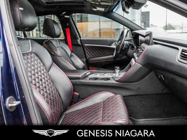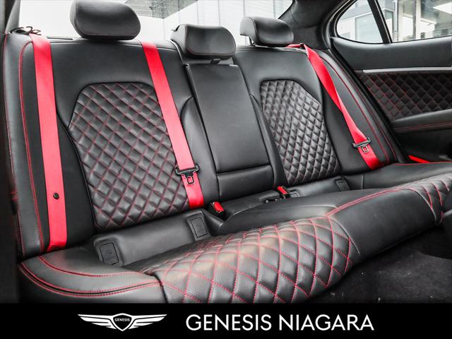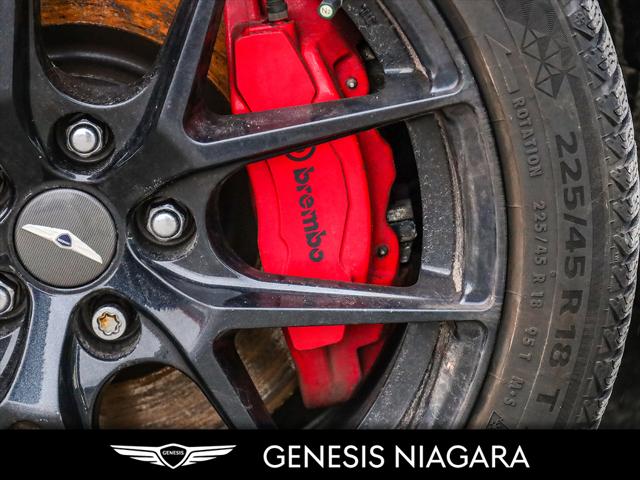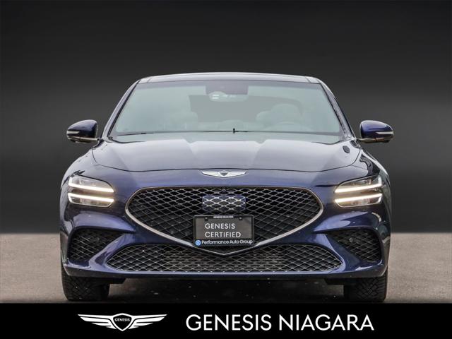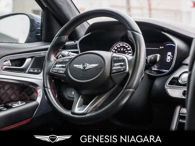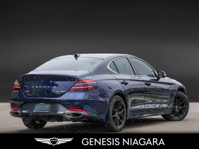 This 2022 G70 3.3T represents great value in a sports sedan with plenty of power and features that include. - Front and Rear parking assistance sensors - Rain-sensing wipers - Power-folding auto-dimming heated side mirrors with Genesis logo puddle lamps - Power tilt-and-telescopic steering column - Drivers Integrated Memory System + Power Driver and Passenger seat adjustment - Ventilated front seats heated rear seats - Wireless charging pad - 15-speaker Lexicon surround sound audio system - Dual exhaust system with oval outlets - 16-way Power Driver Seat including Power Side Bolster & Cushion Extension - Head-Up Display (HUD) - Power trunk lid - 3.3L twin-turbocharged V6 engine with 365hp and 376 lb. ft. of torque - Variable Gear Ratio (VGR) steering rack - Sport-tuned Electronically Control Suspension - Limited Slip Differential (LSD) - Brembo braking system - Nappa leather seating surfaces with sport quilting - Microfibre suede headliner - Sport 19'' aluminum alloy wheels with high-performance summer tires - Alloy pedals - Variable Exhaust Valve - Surround view monitor with Blind Spot View Monitor - Front passenger seat walk-in device - Acoustic Laminated Glass (Front) Q: Do you accept trade ins and is there a cost for an appraisal? Yes we accept trade ins of all makes and models. At Genesis Niagara your vehicle appraisal is completely complimentary. Our management team evaluates your vehicle using current market data condition history and demand to provide a competitive and transparent value. There is no obligation just clear information to help you make a confident decision. Q: I cannot come to the dealership right now but I need a trade value. What should I do? We understand that schedules can be busy. Simply contact our team by phone or email and provide your vehicle details including mileage and photos. We will provide a preliminary market estimate so you can move forward comfortably. When it is convenient for you we will confirm the value with a brief in person review. Q: My vehicle is not a Genesis. Can you still appraise it? Absolutely. We regularly appraise domestic import luxury SUV truck and sedan models of all brands. Our experience in the pre owned market allows us to confidently evaluate virtually any vehicle and provide a fair and competitive offer. Q: Why purchase from Genesis Niagara? Genesis Niagara is committed to delivering a refined transparent and customer focused buying experience for drivers across Ontario. Our 4.8 star Google rating reflects our dedication to exceptional service and professionalism at every step. We offer conveniences such as at home test drives and a straightforward pricing approach designed to make your purchase simple and comfortable. As part of Performance Auto Group one of Ontarios most established and trusted automotive groups you can purchase with added confidence knowing you are supported by a reputable organization with deep industry experience. We are proud supporters of charitable initiatives such as United Way and remain committed to giving back to the communities we serve. Our goal is simple. Provide honest guidance premium service and a purchasing experience that exceeds expectations. Experience the Genesis Difference at Genesis Niagara Refinement doesnt stop at performance; it extends to every aspect of your ownership journey. At Genesis Niagara every touchpoint is centred around you. From convenient at-home test drives and seamless online ordering to our transparent All-Inclusive One Price Promise every detail is designed to elevate your experience. Enjoy thoughtful ownership benefits like complimentary scheduled maintenance and valet service. Visit us today at 332 Ontario Street in St. Catharines right off the QEW. Performance Auto Group's mission is to make car buying easy. We are passionate about innovating so that your experience in any of our dealerships is quick and enjoyable. Youll enjoy working with our friendly teams who are always available to help you make an informed decision. Purchase confidently with our industry-leading transparency tools that provide unprecedented information about the history and condition of our cars. Drive with confidence knowing that we have the most rigorous inspection and reconditioning process in the country handled by our team of factory-trained technicians. We invite you to experience the difference - at Performance Auto Group.