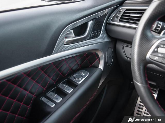 Step into the realm of luxury and performance with the 2022 Genesis G70 3.3T Sport a vehicle crafted for those who appreciate precision engineering and sophisticated design. This used model dressed in a sleek silver exterior exudes elegance and commands attention on every road. Beneath its refined surface lies a powerful 3.3L 6-cylinder engine seamlessly paired with an 8-speed automatic transmission offering a driving experience that is both dynamic and smooth.