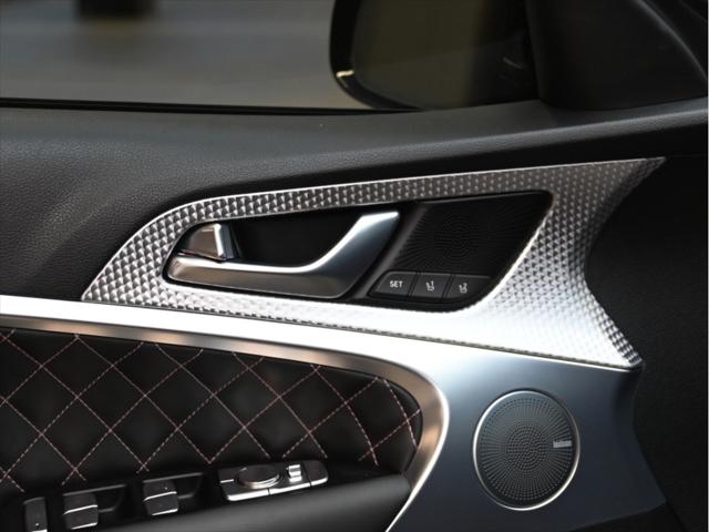 Groupe motopropulseur et performance Moteur V6 biturbo de 3 3 L 365 chevaux à 6 000 tr/min Couple de 376 lb-pi entre 1 300 et 4 500 tr/min Boîte automatique à 8 rapports Traction intégrale (AWD) Contrôle de lancement Sélecteur de modes de conduite (Éco Confort Sport Sport+) Différentiel à glissement limité (Sport) Consommation de carburant (estimée – Canada) Ville : env. 13 0 L/100 km Route : env. 9 8 L/100 km Combinée : env. 11 6 L/100 km Carburant recommandé : super (91 octane) Caractéristiques extérieures Jantes sport en alliage de 19 po Freins haute performance Brembo Suspension sport calibrée Phares et feux arrière à DEL Rétroviseurs extérieurs chauffants et rabattables électriquement Garnitures extérieures en chrome foncé Quadruple sortie déchappement Coffre intelligent mains libres Habitacle et confort Sièges en cuir Nappa Sièges avant chauffants et ventilés Sièges arrière chauffants Siège conducteur électrique à 12 réglages avec mémoire Volant sport gainé de cuir Garnitures intérieures en aluminium Climatisation automatique bizone Volant inclinable et télescopique à réglage électrique Technologie et multimédia Écran tactile de 10 25 po Services connectés Genesis Apple CarPlay et Android Auto™ Système de navigation Recharge sans fil pour téléphone intelligent Affichage tête haute Système audio Lexicon haut de gamme (15 haut-parleurs) Sécurité et aides à la conduite Assistance à lévitement de collision frontale Assistance à lévitement de collision dans les angles morts Assistance au maintien et au suivi de voie Régulateur de vitesse adaptatif avec arrêt et redémarrage Assistance à lévitement de collision transversale arrière Alerte de vigilance du conducteur Caméra panoramique à 360° Avertisseur de distance de stationnement avant et arrière