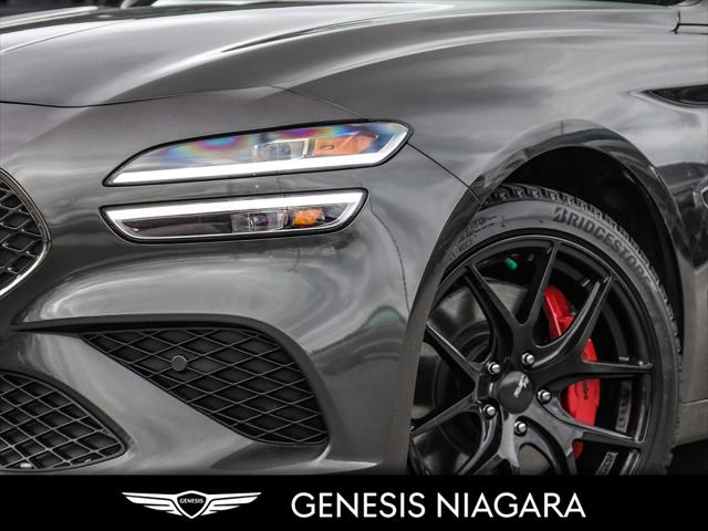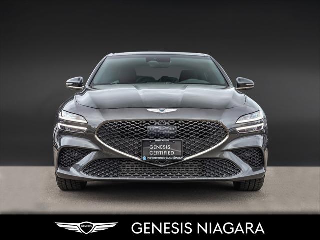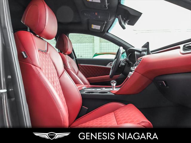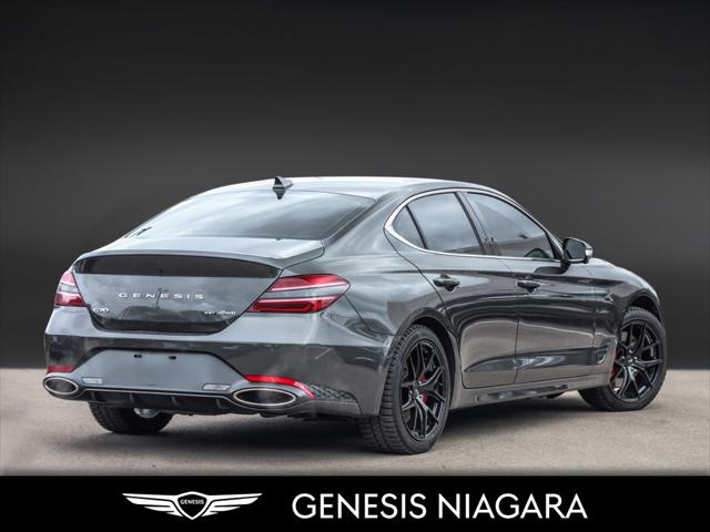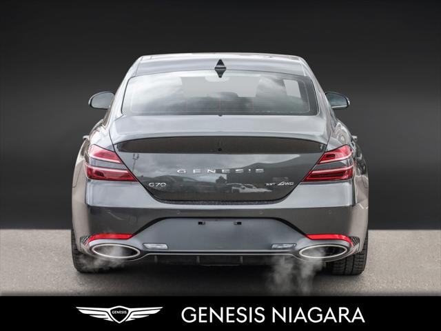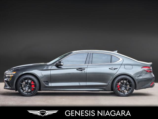 This 2023 G70 3.3T represents great value in a sports sedan with plenty of power and features that include. - Front and Rear parking assistance sensors - Rain-sensing wipers - Power-folding auto-dimming heated side mirrors with Genesis logo puddle lamps - Power tilt-and-telescopic steering column - Drivers Integrated Memory System + Power Driver and Passenger seat adjustment - Ventilated front seats heated rear seats - Wireless charging pad - 15-speaker Lexicon surround sound audio system - Dual exhaust system with oval outlets - 16-way Power Driver Seat including Power Side Bolster & Cushion Extension - Head-Up Display (HUD) - Power trunk lid - 3.3L twin-turbocharged V6 engine with 365hp and 376 lb. ft. of torque - Variable Gear Ratio (VGR) steering rack - Sport-tuned Electronically Control Suspension - Limited Slip Differential (LSD) - Brembo braking system - Nappa leather seating surfaces with sport quilting - Microfibre suede headliner - Sport 19'' aluminum alloy wheels with high-performance summer tires - Alloy pedals - Variable Exhaust Valve - Surround view monitor with Blind Spot View Monitor - Front passenger seat walk-in device - Acoustic Laminated Glass (Front) We are confident your shopping experience with us will be a luxury experience with our ''no pressure'' sales team who are here to help you make the right choice. We are conveniently located at 342 Ontario Street in St.Catharines right off the QEW. We look forward to having you here and experiencing the Genesis difference. **Free Carproof online! Specialist onsite for all credit approvals!*