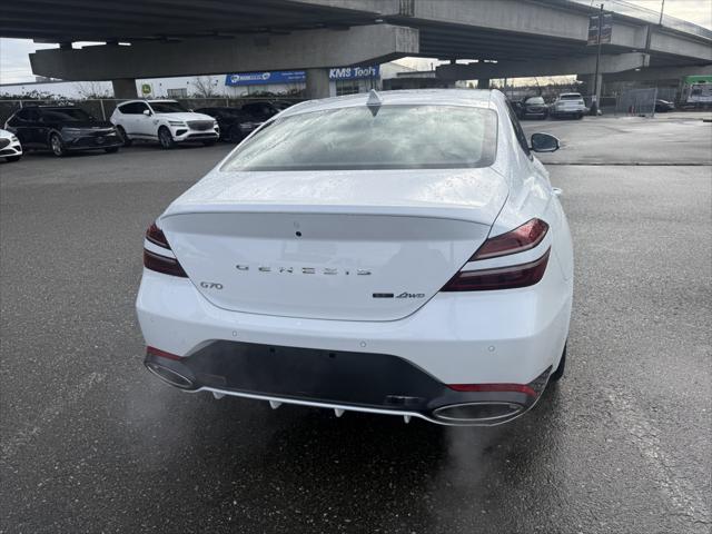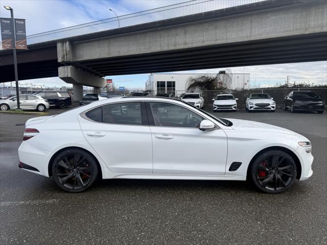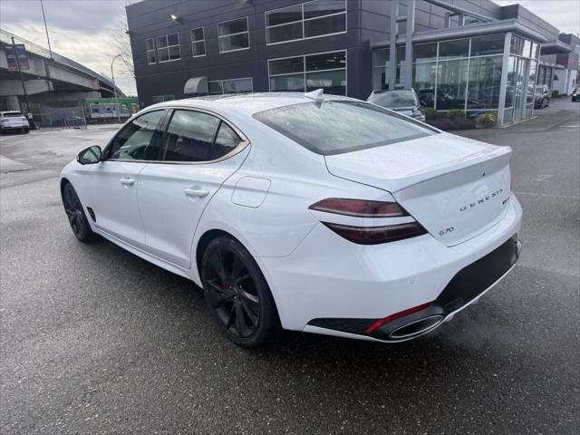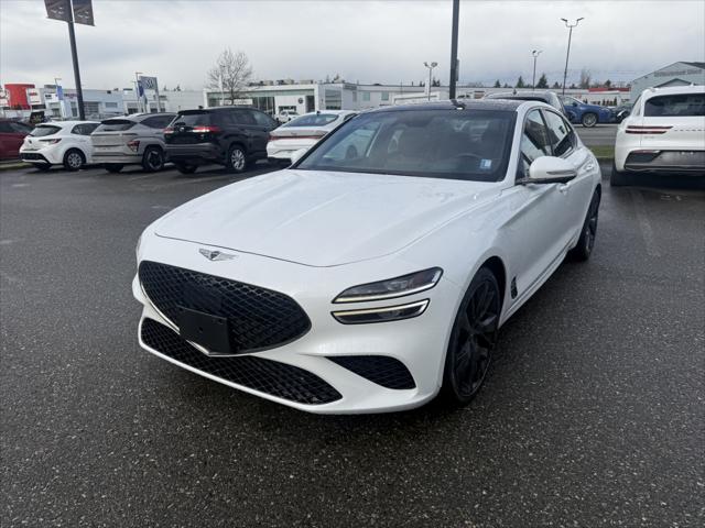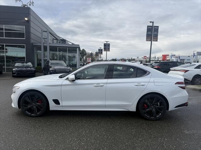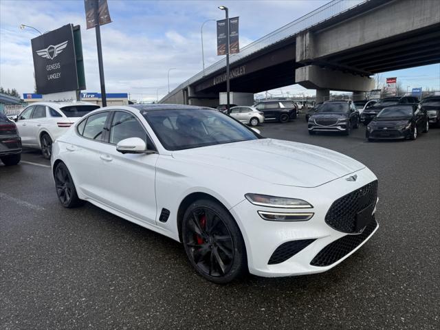 2023 Genesis G70 3.3T Sport Uyuni White ABS brakes Active Cruise Control Alloy wheels Electronic Stability Control Front dual zone A/C Heated & Ventilated Front Bucket Seats Heated door mirrors Heated front seats Heated rear seats Illuminated entry Low tire pressure warning Navigation System Power moonroof Remote keyless entry Traction control.At Genesis Langley we're happy to bring any of our new pre-owned or ex-demo vehicles right to your door with our Genesis Langley at home test-drive service!