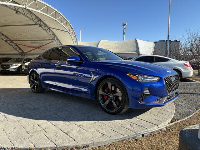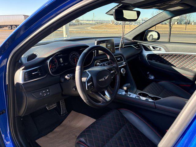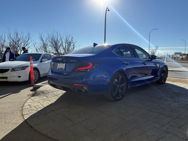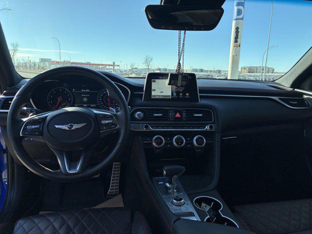 Only 32 655 Miles! This Genesis G70 delivers a Twin Turbo Premium Unleaded V-6 3.3 L/204 engine powering this Automatic transmission. MALLORCA BLUE BLACK/SPORT RED NAPPA LEATHER SEAT TRIM Wireless Phone Connectivity.*This Genesis G70 Comes Equipped with These Options *Window Grid Antenna Wheels: 19 x 8J Fr & 19 x 8.5J Rr Aluminum Alloy -inc: Black 5-spoke Wheels w/Black Accents Valet Function Trip Computer Transmission: 8-Speed Automatic w/SHIFTRONIC -inc: paddle shifters and selectable drive mode (Smart Eco Comfort Sport Custom) Transmission w/Driver Selectable Mode and Oil Cooler Tracker System Tires: P225/40R19 Front & P255/35R19 Rear Summer -inc: High-performance summer Tire Specific Low Tire Pressure Warning.****Payments O.A.C.*The advertised price does not include GST. Discounts may include available manufacturer discounts and/or incentives. Discounts and/or incentives from both the dealership and manufacturer may have certain criteria for eligibility and must be qualified for depending on the nature of the discount and model of vehicle involved. Discounts offered by the manufacturer have discrete legal regulations available on the corresponding manufacturer site. See dealer for all current discount eligibility details. Vehicle data is subject to change without notice. AMVIC Licensed Dealer.