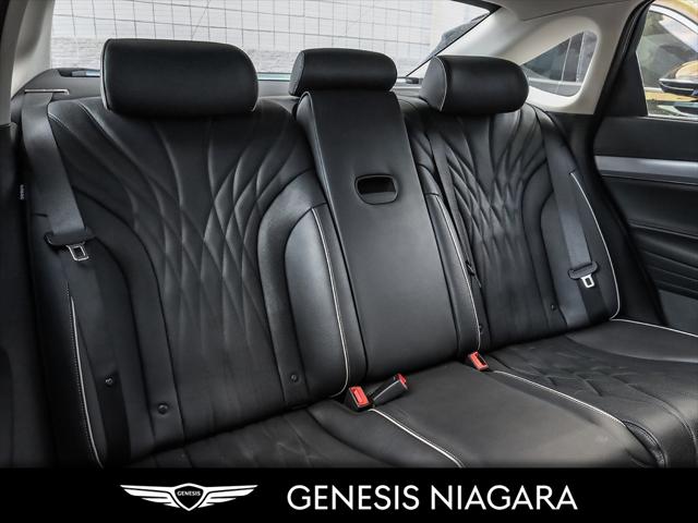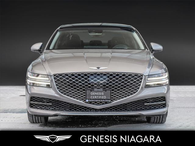 This 2023 G80 2.5T Advanced is a great value with the 2.5T Engine Option. This G80 is powered by a 2.5 Liter Turbo 4 Cylinder that makes an incredible 300HP and 311ft.lb of torque. Its road presence is made recognizable by the 19'' beautiful alloy wheels with Michelin all-season tires that are equipped on this G80. This vehicle has many nice features such as Adaptive Cruise Control Heads up Display Surround View Monitor Blind-Spot View Monitor Highway Driving Assist Lane Keeping Assist Forward Collision Avoidance 14.5'' touch-screen navigation system Proximity-activated hands-free tailgate opening Heated leather steering wheel Heated and Ventilated front seats Lexicon Sound System All-Wheel Drive (AWD) with Terrain Mode Select 8-speed automatic transmission with steering wheel shift paddles