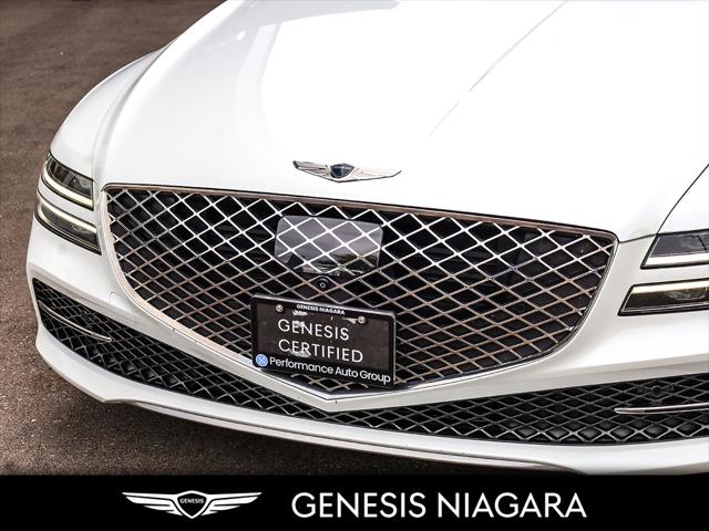 This 2023 G80 2.5T Advanced is a great value with the 2.5T Engine Option. This G80 is powered by a 2.5 Liter Turbo 4 Cylinder that makes an incredible 300HP and 311ft.lb of torque. Its road presence is made recognizable by the 19'' beautiful alloy wheels with Michelin all-season tires that are equipped on this G80. This vehicle has many nice features such as Adaptive Cruise Control Heads up Display Surround View Monitor Blind-Spot View Monitor Highway Driving Assist Lane Keeping Assist Forward Collision Avoidance 14.5'' touch-screen navigation system Proximity-activated hands-free tailgate opening Heated leather steering wheel Heated and Ventilated front seats Lexicon Sound System All-Wheel Drive (AWD) with Terrain Mode Select 8-speed automatic transmission with steering wheel shift paddles