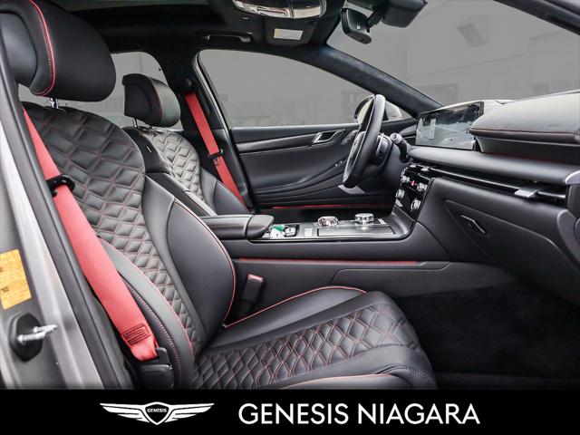 This 2025 G80 3.5T Sport Plus is fully loaded with every possible option. Its road presence is made recognizable by the 20'' aluminum alloy wheels with all-season tires that are equipped on this G80. This vehicle is the definition of luxury with features such as 3.5L twin-turbocharged V6 engine (375 hp 391 lb-ft torque) All-Wheel Drive (AWD) Microfibre suede headliner Sport-tuned Electronic Control Suspension with Road Preview 20'' aluminum alloy wheels Sport leather seating Nappa leather seating w/ quilting Ergo Seat with 16-way drivers power-adjustment and extension Leather-wrapped upper center console Surround View Monitor Aluminum pedals Lane Follow Assist and Lane Keep Assist Rear Wheel Steering Sport+ Drive Mode and Launch Control Parking Collision Avoidance-Assist Rear (PCA-R) Remote Smart Parking Assist (RSPA) Carbon fibre interior Power rear and manual rear side sunshades Blind-Spot View Monitor (BVM) We are confident your shopping experience with us will be a luxury experience with our ''no pressure'' sales team who are here to help you make the right choice. We are conveniently located at 332 Ontario Street in St.Catharines right off the QEW. We look forward to having you here and experiencing the Genesis difference. **Free Carproof online! Specialist onsite for all credit approvals!**
