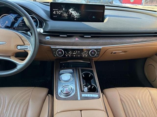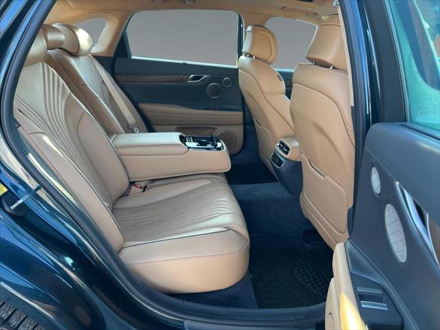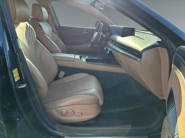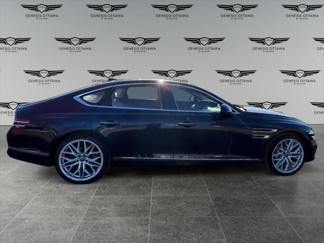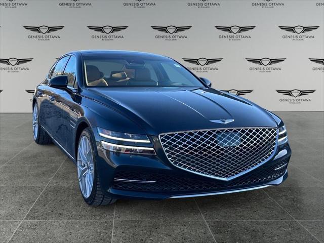 Introducing the elegant 2021 Genesis G80 3.5T Prestige in a striking Blue finish. Take on the road confidently with its advanced AWD drivetrain offering superior handling and control. The exterior is complemented by exquisite alloy wheels and a design that captures the essence of luxury. Inside you'll find an inviting Black interior fitted with leather seats providing utmost comfort for every journey. Enjoy the convenience of heated and cooled front seats alongside heated rear seats and a heated steering wheel ensuring year-round comfort. The Genesis G80 3.5T Prestige is equipped with the latest technology for a seamless driving experience. Stay connected with Bluetooth smart device integration and a premium navigation system displayed through a heads-up display. Safety features like lane assist automatic parking a backup camera and adaptive cruise control are all designed to offer peace of mind on the road. This sedan is perfect for drivers who appreciate sophisticated style cutting-edge technology and comprehensive safety features. Reach out to our dealership today to learn more about this exceptional vehicle and to schedule your personal test drive.