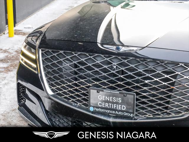 This 2024 GV80 2.5T Advanced is the top of the line package for the 4 cylinder 2.5T option. It represents a great entry point to a GV80 yet is still equipped with a long list of standard features that include the following -2.5L turbocharged inline 4-cylinder engine (300 hp 311 lb-ft) -All-Wheel Drive (AWD) with Terrain Mode Select -8-speed automatic transmission with steering wheel shift paddles -5-passenger seating -20'' aluminum alloy wheels with Michelin all-season tires -Genuine leather seating -Quad LED headlights with LED taillights side repeaters and reverse lights -Panoramic sunroof -Highway Driving Assist High Beam Assist Rear Cross-Traffic Collision-Avoidance Assist Forward Collision-Avoidance Assist and Intelligent Speed Limit Assist -Smart Cruise Control -14.5'' touch-screen navigation system -Head-Up Display (HUD) -Surround View Monitor -Blind-Spot View Monitor (BVM) -Premium Audio with 12 Speakers -Proximity keyless entry with push button start and remote engine start -Proximity-activated hands-free tailgate opening -Wireless charging -Heated leather steering wheel -Heated front seats and rear seats -Ventilated front seats -Rear occupant alert -Three-zone automatic climate control -Self-leveling rear suspension -Genesis Connected Services Q: Do you accept trade ins and is there a cost for an appraisal? Yes we accept trade ins of all makes and models. At Genesis Niagara your vehicle appraisal is completely complimentary. Our management team evaluates your vehicle using current market data condition history and demand to provide a competitive and transparent value. There is no obligation just clear information to help you make a confident decision. Q: I cannot come to the dealership right now but I need a trade value. What should I do? We understand that schedules can be busy. Simply contact our team by phone or email and provide your vehicle details including mileage and photos. We will provide a preliminary market estimate so you can move forward comfortably. When it is convenient for you we will confirm the value with a brief in person review. Q: My vehicle is not a Genesis. Can you still appraise it? Absolutely. We regularly appraise domestic import luxury SUV truck and sedan models of all brands. Our experience in the pre owned market allows us to confidently evaluate virtually any vehicle and provide a fair and competitive offer. Q: Why purchase from Genesis Niagara? Genesis Niagara is committed to delivering a refined transparent and customer focused buying experience for drivers across Ontario. Our 4.8 star Google rating reflects our dedication to exceptional service and professionalism at every step. We offer conveniences such as at home test drives and a straightforward pricing approach designed to make your purchase simple and comfortable. As part of Performance Auto Group one of Ontarios most established and trusted automotive groups you can purchase with added confidence knowing you are supported by a reputable organization with deep industry experience. We are proud supporters of charitable initiatives such as United Way and remain committed to giving back to the communities we serve. Our goal is simple. Provide honest guidance premium service and a purchasing experience that exceeds expectations. Experience the Genesis Difference at Genesis Niagara Refinement doesnt stop at performance; it extends to every aspect of your ownership journey. At Genesis Niagara every touchpoint is centred around you. From convenient at-home test drives and seamless online ordering to our transparent All-Inclusive One Price Promise every detail is designed to elevate your experience. Enjoy thoughtful ownership benefits like complimentary scheduled maintenance and valet service. Visit us today at 332 Ontario Street in St. Catharines right off the QEW. Performance Auto Group's mission is to make car buying easy. We are passionate about innovating so that your experience in any of our dealerships is quick and enjoyable. Youll enjoy working with our friendly teams who are always available to help you make an informed decision. Purchase confidently with our industry-leading transparency tools that provide unprecedented information about the history and condition of our cars. Drive with confidence knowing that we have the most rigorous inspection and reconditioning process in the country handled by our team of factory-trained technicians. We invite you to experience the difference - at Performance Auto Group.