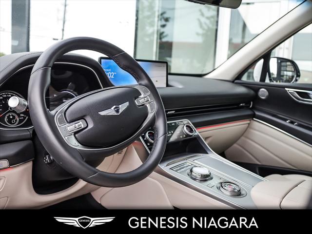 This 2024 GV80 2.5T Advanced is the top of the line package for the 4 cylinder 2.5T option. It represents a great entry point to a GV80 yet is still equipped with a long list of standard features that include the following -2.5L turbocharged inline 4-cylinder engine (300 hp 311 lb-ft) -All-Wheel Drive (AWD) with Terrain Mode Select -8-speed automatic transmission with steering wheel shift paddles -5-passenger seating -20'' aluminum alloy wheels with Michelin all-season tires -Genuine leather seating -Quad LED headlights with LED taillights side repeaters and reverse lights -Panoramic sunroof -Highway Driving Assist High Beam Assist Rear Cross-Traffic Collision-Avoidance Assist Forward Collision-Avoidance Assist and Intelligent Speed Limit Assist -Smart Cruise Control -14.5'' touch-screen navigation system -Head-Up Display (HUD) -Surround View Monitor -Blind-Spot View Monitor (BVM) -Premium Audio with 12 Speakers -Proximity keyless entry with push button start and remote engine start -Proximity-activated hands-free tailgate opening -Wireless charging -Heated leather steering wheel -Heated front seats and rear seats -Ventilated front seats -Rear occupant alert -Three-zone automatic climate control -Self-leveling rear suspension -Genesis Connected Services We are confident your shopping experience with us will be a luxury experience with our ''no pressure'' sales team who are here to help you make the right choice. We are conveniently located at 332 Ontario Street in St.Catharines right off the QEW. We look forward to having you here and experiencing the Genesis difference. **Free Carproof online! Specialist onsite for all credit approvals!**