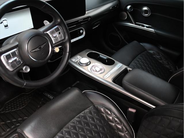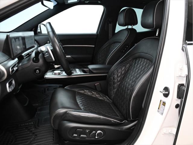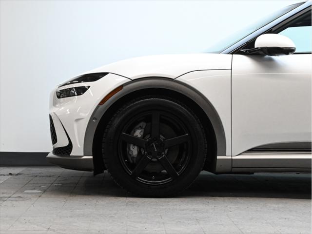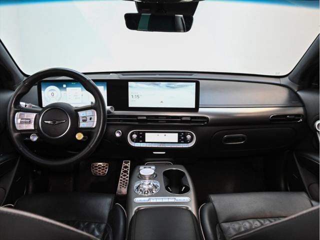 Groupe motopropulseur et performance Deux moteurs électriques (AWD) Puissance totale : 429 ch Mode Boost : 483 ch (10 secondes) Couple : 516 lb-pi 0–100 km/h : environ 4 0 secondes Rouage intégral (AWD) Batterie et recharge Batterie lithium-ion de 77 4 kWh Autonomie estimée (WLTP) : ~466 km Recharge rapide CC (350 kW) : 10 à 80 % en ~18 minutes Architecture électrique 800 volts Freinage régénératif avec palettes au volant Caractéristiques extérieures Jantes en alliage de 21 po (design Performance exclusif) Système de réduction active du bruit de la route Phares à DEL adaptatifs Feux de route automatiques Rétroviseurs chauffants à rabattement électrique Poignées de porte affleurantes Hayon électrique intelligent mains libres Intérieur et confort Sièges en cuir Nappa Sièges avant chauffants et ventilés Sièges arrière chauffants Sièges avant à réglages électriques avec mémoire (conducteur) Volant chauffant Sélecteur de vitesses électronique Crystal Sphere Éclairage dambiance intérieur Technologie et multimédia Deux écrans de 12 3 po (tableau de bord et multimédia) Services connectés Genesis Navigation avec planification de recharge Apple CarPlay et Android Auto™ Recharge sans fil pour téléphone intelligent Système audio haut de gamme Bang & Olufsen Sécurité et aides à la conduite Assistance à la conduite sur autoroute II Assistance à lévitement de collision frontale Assistance à lévitement de collision dans les angles morts Alerte de circulation transversale arrière avec freinage Régulateur de vitesse intelligent avec arrêt-redémarrage Assistance au suivi de voie Caméra à vision périphérique Assistance au stationnement à distance