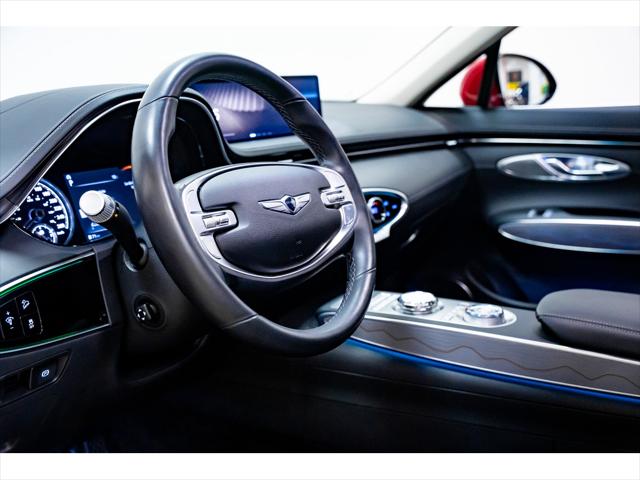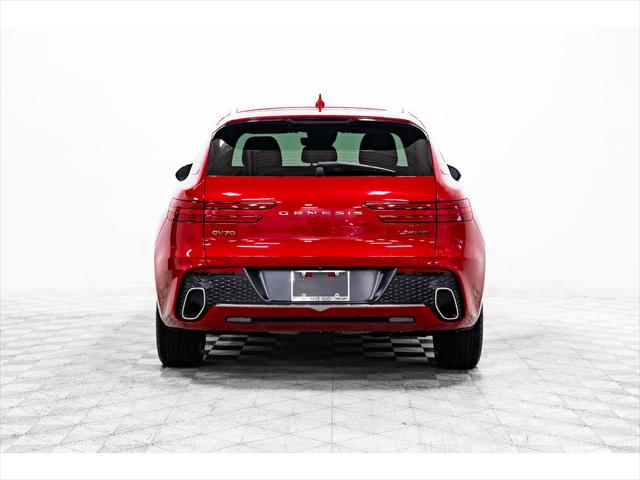 Genesis GV70 2.5T Advanced Plus 2023 [] Traction intégrale intelligente [] Moteur 4 cylindres turbo 2 5 L [] Transmission automatique à 8 rapports [] Toit ouvrant panoramique [] Sièges avant chauffants et ventilés [] Sièges en cuir [] Volant chauffant [] Système multimédia avec écran tactile 14 5 po [] Navigation intégrée [] Apple CarPlay et Android Auto [] Système audio haut de gamme Lexicon [] Caméra de recul avec capteurs de stationnement [] Aide au maintien dans la voie [] Régulateur de vitesse adaptatif [] Surveillance des angles morts [] Hayon électrique mains libres Le point fort de ce VUS de luxe réside dans son équilibre exceptionnel entre performance raffinée confort haut de gamme et technologies avancées offrant une expérience de conduite nettement supérieure dans toutes les conditions. Dès les premiers kilomètres on remarque une tenue de route précise et rassurante combinée à une insonorisation remarquable qui transforme chaque trajet en moment de détente. Le moteur turbo de 2 5 litres procure des accélérations fluides et efficaces parfaitement adaptées autant à la conduite urbaine quaux longs parcours autoroutiers. La traction intégrale intelligente optimise ladhérence et la stabilité assurant une confiance accrue en toute saison. La transmission automatique à 8 rapports se distingue par sa douceur et sa réactivité contribuant à une conduite souple et maîtrisée. À bord lhabitacle se démarque par la qualité des matériaux lergonomie soignée et lattention portée aux détails. Les sièges en cuir chauffants et ventilés assurent un confort optimal tandis que le toit ouvrant panoramique accentue la sensation despace et de luminosité. Le poste de conduite est orienté vers le conducteur mettant à portée de main les commandes essentielles. Les technologies embarquées rehaussent lexpérience au quotidien. Lécran tactile de 14 5 pouces combiné à la navigation intégrée offre une interface claire et intuitive. La compatibilité avec Apple CarPlay et Android Auto facilite la connectivité alors que le système audio Lexicon enveloppe lhabitacle dun son riche et précis. Côté sécurité les aides à la conduite sont nombreuses et efficaces. La surveillance des angles morts laide au maintien dans la voie et le régulateur de vitesse adaptatif contribuent à une conduite plus sereine et sécuritaire. Le hayon électrique mains libres ajoute une touche de praticité appréciable au quotidien. Venez lessayer dès aujourdhui chez Brossard Hyundai et découvrez par vous-même tout ce quil a à offrir. Veuillez toujours vérifier lexactitude des équipements auprès dun représentant chez Brossard Hyundai. Genesis GV70 2.5T Advanced Plus 2023 [] Intelligent all-wheel drive [] 2.5L turbocharged 4-cylinder engine [] 8-speed automatic transmission [] Panoramic sunroof [] Heated and ventilated front seats [] Leather seating surfaces [] Heated steering wheel [] 14.5-inch touchscreen infotainment system [] Integrated navigation [] Apple CarPlay and Android Auto [] Premium Lexicon audio system [] Rearview camera with parking sensors [] Lane keeping assist [] Adaptive cruise control [] Blind spot monitoring [] Hands-free power tailgate The key strength of this luxury SUV lies in its exceptional balance of refined performance premium comfort and advanced technology delivering a driving experience that feels both confident and indulgent in every situation. From the moment you set off the ride quality stands out with composed handling and impressive sound insulation that enhances overall comfort. The turbocharged 2.5-litre engine delivers smooth and responsive acceleration well suited for daily commuting as well as longer highway journeys. Intelligent all-wheel drive improves traction and stability providing reassurance year-round. The 8-speed automatic transmission shifts seamlessly contributing to a refined and controlled driving feel. Inside the cabin showcases high-quality materials and a thoughtfully designed layout. Heated and ventilated leather seats ensure excellent comfort while the panoramic sunroof floods the interior with natural light and creates a sense of openness. The driver-focused cockpit places controls intuitively enhancing ease of use and driving pleasure. Technology plays a central role in the overall experience. The large 14.5-inch touchscreen with integrated navigation offers clear visuals and intuitive operation. Smartphone integration through Apple CarPlay and Android Auto keeps you connected while the Lexicon premium audio system delivers rich immersive sound throughout the cabin. Safety and driver assistance features add confidence behind the wheel. Blind spot monitoring lane keeping assist and adaptive cruise control help reduce fatigue and increase awareness during every drive. The hands-free power tailgate adds everyday convenience making loading and unloading effortless. Come experience it for yourself today at Brossard Hyundai and discover what sets it apart. Please always verify the accuracy of listed equipment with a representative at Brossard Hyundai. *Concessionnaire Hyundai de premier rang dans la région de Montréal *Fondé en 1997 et en croissance continue depuis. *Service à la clientèle de qualité offrant réparation et entretien. *Inventaire complet de véhicules neufs et usagés. *Valeur des véhicules d'échange attrayante. *Facilité de financement grâce au service des finances. *Service après-vente comprenant pièces et réparation. *Dessert une large région incluant Brossard La Prairie Montréal etc. *Personnel dévoué et techniciens chevronnés pour une expérience d'achat agréable et avantageuse. *Le présent site utilise un générateur d'équipements caractéristiques et spécifications techniques automatisée basée sur des listes fournies par différentes sources publiques pour ce type de véhicule. Ces informations sont à titre indicatif seulement et ne doivent sous aucun prétexte être