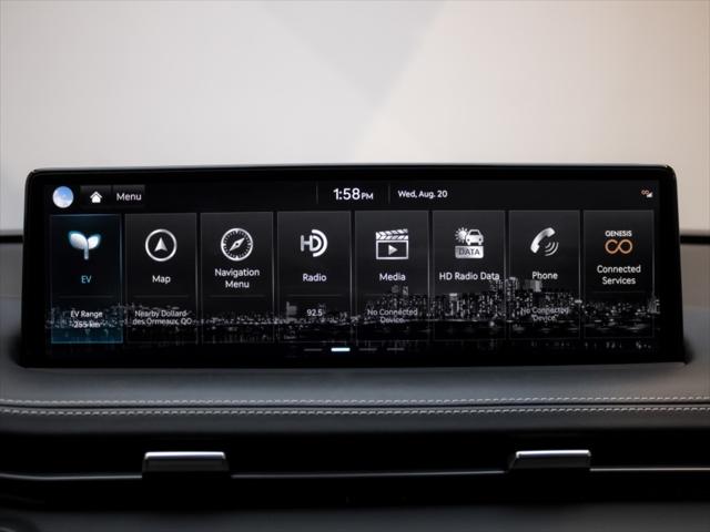 Groupe motopropulseur & Performance Deux moteurs électriques traction intégrale (AWD) Puissance : 429 ch (jusquà 483 ch en mode boost ») Couple : 516 lb-pi Accélération 0–100 km/h : ~4 5 secondes Batterie lithium-ion 77 4 kWh Autonomie : environ 383 km (selon RNCan) Recharge ultra-rapide (10 % à 80 % en ~18 minutes avec borne DC 350 kW) Dimensions Longueur : 4 715 mm Largeur : 1 910 mm Hauteur : 1 630 mm Empattement : 2 875 mm Intérieur & Confort Sièges en cuir Nappa matelassés Sièges avant chauffants et ventilés sièges arrière chauffants Tableau de bord numérique 3D de 12 3 po Écran central HD de 14 5 po avec navigation Système audio Lexicon à 14 haut-parleurs Toit panoramique Affichage tête haute (Head-up Display) Éclairage dambiance intérieur Technologie & Sécurité Services connectés Genesis Apple CarPlay™ et Android Auto™ Assistance au stationnement intelligent à distance Assistance à la conduite sur autoroute II Assistance anticollision frontale Assistance anticollision dans les angles morts Caméras panoramiques 3D (Surround View Monitor) Ensemble complet daides à la conduite (ADAS) Roues & Extérieur Roues en alliage de 20 po (design exclusif EV) Calandre Genesis avec port de recharge intégré Phares et feux arrière à DEL quad-lamp