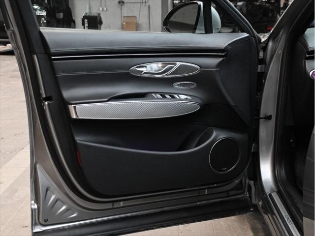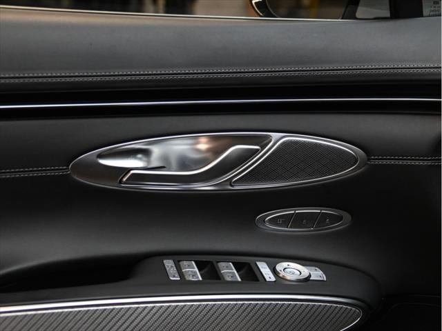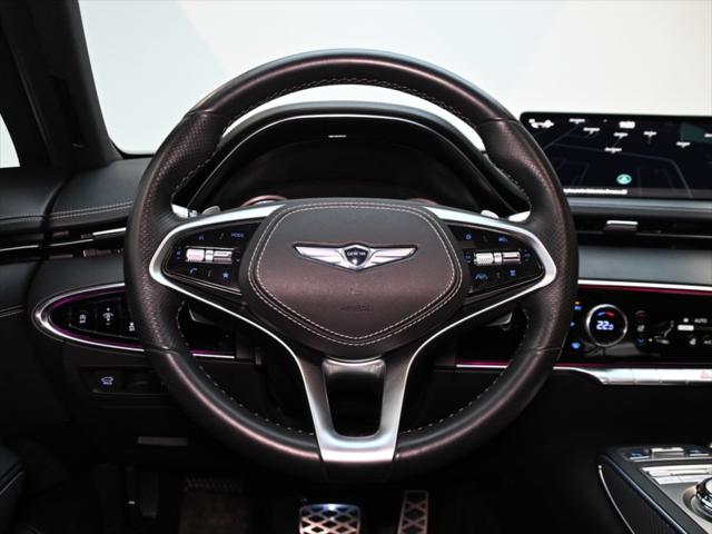 Groupe motopropulseur Moteur : V6 biturbo de 3 5 L Puissance : 375 ch à 5 800 tr/min Couple : 391 lb-pi de 1 300 à 4 500 tr/min Transmission : Automatique à 8 rapports Traction : Traction intégrale (AWD) Consommation de carburant (L/100 km – approx.) Ville : 13 1 Route : 10 5 Combinée : 11 9 Suspension et performance Suspension sport Suspension à contrôle électronique avec lecture de la route Différentiel arrière à glissement limité Sélecteur de modes de conduite (Éco Confort Sport Sport+ Personnalisé) Habitacle et confort Capacité : 5 passagers Sièges garnis de cuir Nappa Sièges avant à réglages électriques avec mémoire (conducteur) Sièges avant chauffants et ventilés Sièges arrière chauffants Volant chauffant Climatisation automatique à deux zones Toit ouvrant panoramique Pédales sport en aluminium Garnitures intérieures sport avec inserts en fibre de carbone Multimédia et technologie Écran tactile HD de 14 5 pouces Système de navigation Genesis Apple CarPlay et Android Auto™ Système audio haut de gamme Lexicon (15 haut-parleurs) Recharge sans fil pour téléphone intelligent Affichage tête haute Tableau de bord numérique Sécurité et aides à la conduite Assistance à lévitement de collision frontale Assistance à lévitement de collision dans les angles morts Moniteur dangles morts avec affichage Assistance à la conduite sur autoroute Régulateur de vitesse adaptatif avec arrêt-redémarrage Assistance au maintien et au suivi de voie Assistance à lévitement de collision transversale arrière Moniteur à vue panoramique (caméra 360°) Aide au stationnement intelligent à distance Extérieur Jantes sport en alliage de 21 pouces Quatre sorties déchappement Pare-chocs avant et arrière sport Calandre et garnitures en chrome foncé Phares et feux arrière à DEL Capacité de remorquage Jusquà 3 500 lb