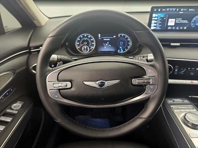 This Genesis GV70 is a premium SUV that sports an urban design to maximize its athletic elegance dynamic driving experience and has an interior that showcases its state?of?the?art technology and futuristic design. For an evolutionary step in luxury performance and technology this 2022 GV70 is an obvious choice. This SUV has 50 458 km. It's Black in colour. It has an Automatic transmission and is powered by a 3.5L V6 24V PDI DOHC Twin Turbo engine.