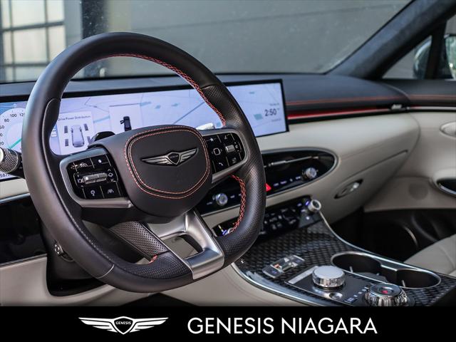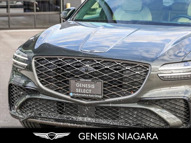 This 2026 GV70 3.5T Sport is fully loaded with every possible option including a 27 OLED Instrument Cluster . Its road presence is made recognizable by the 21'' Dark alloy wheels with Michelin all-season tires that are equipped on this GV70. 3.5L twin-turbocharged V6 engine (375 hp 391 lb-ft torque) Electronic Control Suspension with Road Preview B @ O Premium Audio Head-Up Display (HUD) 21'' aluminum alloy wheels (Sport) Sport Appearance - Unique front and rear facia with G Matrix pattern -Unique 21'''' aluminum alloy wheels -Large three dimensional air intake -Three dimensional skid plate pattern -Dark chrome unique front grill pattern -Blacked out grille surround bezel -U Microfibre suede headliner Nappa leather seating with suede Ergo Seat with 16-way drivers power-adjustment and bolsters Aluminum Sports Trim Alloy Pedals Nappa leather seating with quilting (Sport) Carbon Fiber Trim Laminated / Acoustic Rear Door Glass Microfibre suede headliner Remote Smart Parking Assist (RSPA) Parking Collision Avoidance-Assist Rear (PCA-R) 27 OLED Instrument Cluster & Navigation System Surround View Monitor Blind-Spot View Monitor (BVM) Manual Rear Side Sunshades We are confident your shopping experience with us will be a luxury experience with our ''no pressure'' sales team who are here to help you make the right choice. We are conveniently located at 332 Ontario Street in St.Catharines right off the QEW. We look forward to having you here and experiencing the Genesis difference. **Free Carproof online! Specialist onsite for all credit approvals!**