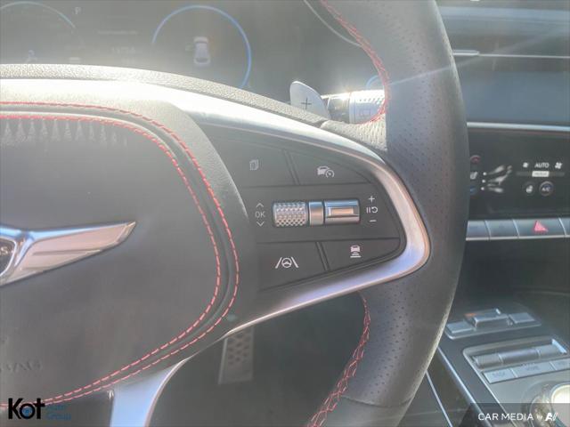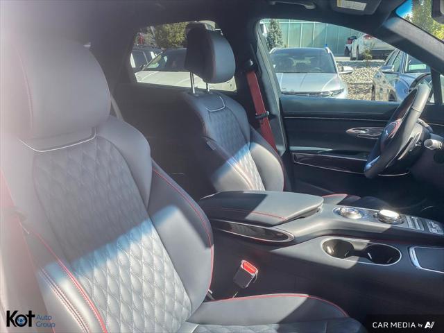 The 2025 Genesis GV70 3.5T Sport Plus w/LSD delivers premium SUV confidence with real performance and everyday ease. This used model at Genesis Kelowna shows just 6 492 km and pairs a White exterior with a Blue interior for a fresh upscale look. Its four-door design automatic transmission and 3.5-litre unleaded engine make every drive feel smooth and strong. This 2025 Genesis GV70 3.5T Sport Plus w/LSD blends athletic response with refined comfort. A limited slip differential adjustable suspension head-up display navigation glass sunroof and heated front and rear seats give it a well-rounded appeal. It is built for drivers who want power control and luxury in one sharp package. FEATURES OF THE GV70 3.5T Sport Plus w/LSD »» 3.5-litre turbo power for quick response »» Limited slip differential adds confident traction »» Adjustable suspension supports sporty road feel »» Head-up display keeps data in view ADVANCED SAFETY FEATURES »» Backup camera helps with tight parking »» Blind spot monitor adds lane awareness »» Lane departure warning supports safer travel »» Side and head airbags enhance protection The safety package in this Genesis focuses on simple useful support. Anti-Lock Braking System stability control child safety locks tire pressure monitoring automatic headlights and passenger airbag sensor all help create peace of mind for daily driving in Kelowna and beyond. PERFORMANCE AND EFFICIENCY »» 3.5-litre unleaded engine delivers strong output »» Eight-speed automatic supports smooth acceleration »» Dual shift mode adds manual control »» Limited slip differential improves cornering grip This Genesis SUV offers quick power delivery and composed road manners. Power steering adds easy control while performance tires and adjustable suspension help it feel planted through turns. The automatic transmission keeps shifts smooth in traffic and relaxed on the highway. COMFORT AND CONVENIENCE »» Heated front seats add cold-weather comfort »» Heated rear seats help passengers stay warm »» Dual-zone climate control manages cabin comfort »» Power liftgate adds everyday loading ease Inside this Genesis is designed to make every trip easier. Remote starter push button start power windows electric mirrors heated mirrors retractable mirrors rear climate control rear air conditioning and memory settings all add premium convenience. The sunroof and ambient lighting package create an open welcoming atmosphere. TECHNONOLGY AND CONNECTIVITY »» Navigation system provides clear route guidance »» Bluetooth integration supports hands-free connection »» Satellite radio expands listening choices »» Steering wheel audio controls simplify use Technology in this Genesis keeps key information close at hand. The head-up display helps reduce distraction while HD Radio adds clarity. An auto-dimming rearview mirror supports comfort at night and the clear interface makes everyday functions easy to access and use. CARGO SPACE »» Rear trunk access supports easy loading »» Power liftgate opens cargo area quickly »» Four-door layout improves passenger entry »» Spare tire adds travel reassurance The cargo area is practical for shopping sports gear and weekend bags. The wide rear opening helps with bulky items and the cabin layout supports daily flexibility. This SUV gives you the utility expected from a luxury crossover without losing its refined feel. AWARDS & RECOGNITIONS »» Top Safety Pick Insurance Institute for Highway Safety 2024 WHAT OTHER OWNERS LIKE »» Strong acceleration from twin-turbo V6 engine »» Quiet cabin with premium comfort features »» Easy-to-use infotainment and navigation system »» Confident handling with balanced ride quality This 2025 Genesis GV70 3.5T Sport Plus w/LSD stands out with low kilometres premium equipment and real driver appeal. From its White exterior and Blue interior to its advanced safety comfort and performance features it offers excellent value for buyers seeking a luxury SUV with presence and capability. This 2025 Genesis GV70 3.5T Sport Plus w/LSD's VIN is: KMUMCDTC3SU179391.