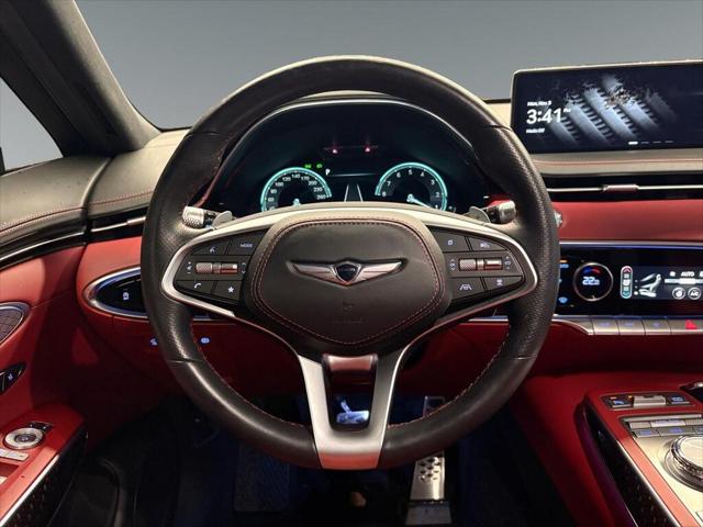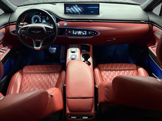The 2024 Genesis GV70 3.5T Sport Plus w/LSD in bold black with advanced AWD promises an exquisite driving experience perfect for the discerning motorist who demands both performance and style. With its robust 3.5L 6-cylinder engine delivering impressive power at 375 RPM and a smooth automatic transmission handling this dynamic SUV is pure pleasure. The sharp black exterior is complemented by sleek alloy wheels and a sophisticated silhouette that exudes confidence. Inside the black leather seats and trim create an ambiance of refined luxury while the spacious cabin ensures comfort for all passengers. The incorporation of a sunroof/moonroof adds a touch of openness enhancing the driving experience. The Genesis GV70 is equipped with cutting-edge technology to keep you connected and safe. It features a navigation system a heads-up display and smart device integration making every journey convenient. Safety is enhanced with options such as adaptive cruise control lane assist and parking sensors not to mention the practicality of a backup camera and automatic parking. With the comfort of heated and cooled seats a heated steering wheel and remote start this SUV meets all your needs with effortless grace. This vehicle is ideal for families or individuals looking for luxury and convenience in one package. Whether you're commuting in the city or heading out on a long drive the Genesis GV70 is designed to meet all your expectations. Contact our dealership today for more information and let us help you elevate your driving experience.
