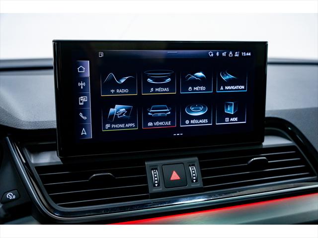 Audi Q5 Technik 2023 [] Système de traction intégrale quattro [] Moteur 4 cylindres turbo 2.0 TFSI [] Transmission automatique à 7 rapports S tronic [] Système multimédia MMI Navigation Plus [] Tableau de bord numérique Audi virtual cockpit plus [] Système audio Bang & Olufsen 3D [] Sièges avant chauffants et ventilés [] Sièges arrière chauffants [] Toit panoramique ouvrant [] Affichage tête haute [] Phares Matrix LED [] Aides à la conduite avancées (angle mort maintien de voie régulateur adaptatif) La force principale de ce VUS réside dans son équilibre exceptionnel entre luxe raffiné technologies de pointe et tenue de route irréprochable offrant une expérience de conduite hautement sécurisante et dynamique en toute saison. Pensé pour les conducteurs exigeants il combine une présentation intérieure soignée à des performances fluides tout en maintenant un excellent niveau de confort au quotidien. Lhabitacle se distingue par la qualité des matériaux lergonomie exemplaire et lambiance haut de gamme. Le tableau de bord numérique Audi virtual cockpit plus permet une personnalisation complète de laffichage tandis que le système MMI Navigation Plus assure une connectivité intuitive avec les fonctions du véhicule. Le système audio Bang & Olufsen 3D enveloppe les occupants dune sonorité riche et précise idéale pour les longs trajets comme pour les déplacements urbains. Sous le capot le moteur turbo 2.0 TFSI offre des accélérations franches et une efficacité remarquable jumelé à la transmission S tronic pour des changements de rapports rapides et doux. La traction intégrale quattro procure une stabilité accrue et une adhérence constante particulièrement appréciée lors de conditions routières variables. Côté confort les sièges avant chauffants et ventilés les sièges arrière chauffants ainsi que le toit panoramique créent une atmosphère agréable pour tous les passagers. Les phares Matrix LED améliorent la visibilité de nuit tandis que laffichage tête haute permet de garder les informations essentielles dans le champ de vision du conducteur. Les technologies daide à la conduite telles que le régulateur de vitesse adaptatif lassistance au maintien de voie et la surveillance des angles morts renforcent la sécurité et réduisent la fatigue lors des longs trajets. Véritable référence dans sa catégorie ce VUS de luxe se démarque par sa polyvalence son raffinement et son niveau déquipement impressionnant. Nous vous invitons à venir lessayer chez Brossard Hyundai; veuillez toujours vérifier lexactitude des équipements auprès dun représentant de Brossard Hyundai. Audi Q5 Technik 2023 [] quattro all-wheel drive system [] 2.0L TFSI turbocharged four-cylinder engine [] 7-speed S tronic automatic transmission [] MMI Navigation Plus infotainment system [] Audi virtual cockpit plus digital display [] Bang & Olufsen 3D sound system [] Heated and ventilated front seats [] Heated rear seats [] Panoramic sunroof [] Head-up display [] Matrix LED headlights [] Advanced driver assistance systems The vehicles greatest strength lies in its outstanding balance of luxury advanced technology and confident driving dynamics delivering a refined and reassuring experience in all conditions. Designed for drivers who expect both performance and sophistication it offers an interior environment that feels premium while remaining practical for everyday use. Inside the cabin showcases exceptional build quality elegant materials and a driver-focused layout. The Audi virtual cockpit plus provides a fully digital and customizable instrument display allowing key information to be viewed clearly and intuitively. The MMI Navigation Plus system ensures seamless access to navigation media and vehicle settings while the Bang & Olufsen 3D sound system delivers immersive high-fidelity audio throughout the cabin. Power comes from a responsive 2.0L turbocharged TFSI engine paired with a smooth-shifting S tronic transmission. Acceleration is confident and refined making highway merging and city driving effortless. The quattro all-wheel drive system enhances stability and traction giving the driver added confidence on varying road surfaces. Comfort is a defining feature with heated and ventilated front seats heated rear seats and a panoramic sunroof that brightens the interior and enhances the sense of space. Matrix LED headlights provide excellent nighttime visibility and adaptive lighting while the head-up display allows drivers to keep their eyes on the road with essential information projected directly in front of them. A comprehensive suite of driver assistance technologies including adaptive cruise control lane keeping assistance and blind spot monitoring contributes to a safer and more relaxed driving experience especially on longer journeys. As a premium SUV it stands out for its versatility refined design and impressive level of standard equipment making it an ideal choice for those seeking both luxury and performance. We invite you to experience it in person at Brossard Hyundai and please always verify the exact equipment with a representative at Brossard Hyundai. *Concessionnaire Hyundai de premier rang dans la région de Montréal *Fondé en 1997 et en croissance continue depuis. *Service à la clientèle de qualité offrant réparation et entretien. *Inventaire complet de véhicules neufs et usagés. *Valeur des véhicules d'échange attrayante. *Facilité de financement grâce au service des finances. *Service après-vente comprenant pièces et réparation. *Dessert une large région incluant Brossard La Prairie Montréal etc. *Personnel dévoué et techniciens chevronnés pour une expérience d'achat agréable et avantageuse. *Le présent site utilise un générateur d'équipements caractéristiques et spécifications techniques automatisée basée sur des listes fournies par différentes sources publiques pour ce type de véhicule. Ces informations sont à t