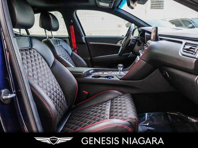 This 2023 G70 3.3T represents great value in a sports sedan with plenty of power and features that include. - Front and Rear parking assistance sensors - Rain-sensing wipers - Power-folding auto-dimming heated side mirrors with Genesis logo puddle lamps - Power tilt-and-telescopic steering column - Drivers Integrated Memory System + Power Driver and Passenger seat adjustment - Ventilated front seats heated rear seats - Wireless charging pad - 15-speaker Lexicon surround sound audio system - Dual exhaust system with oval outlets - 16-way Power Driver Seat including Power Side Bolster & Cushion Extension - Head-Up Display (HUD) - Power trunk lid - 3.3L twin-turbocharged V6 engine with 365hp and 376 lb. ft. of torque - Variable Gear Ratio (VGR) steering rack - Sport-tuned Electronically Control Suspension - Limited Slip Differential (LSD) - Brembo braking system - Nappa leather seating surfaces with sport quilting - Microfibre suede headliner - Sport 19'' aluminum alloy wheels with high-performance summer tires - Alloy pedals - Variable Exhaust Valve - Surround view monitor with Blind Spot View Monitor - Front passenger seat walk-in device - Acoustic Laminated Glass (Front) Q: Do you accept trade ins and is there a cost for an appraisal? Yes we accept trade ins of all makes and models. At Genesis Niagara your vehicle appraisal is completely complimentary. Our management team evaluates your vehicle using current market data condition history and demand to provide a competitive and transparent value. There is no obligation just clear information to help you make a confident decision. Q: I cannot come to the dealership right now but I need a trade value. What should I do? We understand that schedules can be busy. Simply contact our team by phone or email and provide your vehicle details including mileage and photos. We will provide a preliminary market estimate so you can move forward comfortably. When it is convenient for you we will confirm the value with a brief in person review. Q: My vehicle is not a Genesis. Can you still appraise it? Absolutely. We regularly appraise domestic import luxury SUV truck and sedan models of all brands. Our experience in the pre owned market allows us to confidently evaluate virtually any vehicle and provide a fair and competitive offer. Q: Why purchase from Genesis Niagara? Genesis Niagara is committed to delivering a refined transparent and customer focused buying experience for drivers across Ontario. Our 4.8 star Google rating reflects our dedication to exceptional service and professionalism at every step. We offer conveniences such as at home test drives and a straightforward pricing approach designed to make your purchase simple and comfortable. As part of Performance Auto Group one of Ontarios most established and trusted automotive groups you can purchase with added confidence knowing you are supported by a reputable organization with deep industry experience. We are proud supporters of charitable initiatives such as United Way and remain committed to giving back to the communities we serve. Our goal is simple. Provide honest guidance premium service and a purchasing experience that exceeds expectations. Experience the Genesis Difference at Genesis Niagara Refinement doesnt stop at performance; it extends to every aspect of your ownership journey. At Genesis Niagara every touchpoint is centred around you. From convenient at-home test drives and seamless online ordering to our transparent All-Inclusive One Price Promise every detail is designed to elevate your experience. Enjoy thoughtful ownership benefits like complimentary scheduled maintenance and valet service. Visit us today at 332 Ontario Street in St. Catharines right off the QEW. Performance Auto Group's mission is to make car buying easy. We are passionate about innovating so that your experience in any of our dealerships is quick and enjoyable. Youll enjoy working with our friendly teams who are always available to help you make an informed decision. Purchase confidently with our industry-leading transparency tools that provide unprecedented information about the history and condition of our cars. Drive with confidence knowing that we have the most rigorous inspection and reconditioning process in the country handled by our team of factory-trained technicians. We invite you to experience the difference - at Performance Auto Group.