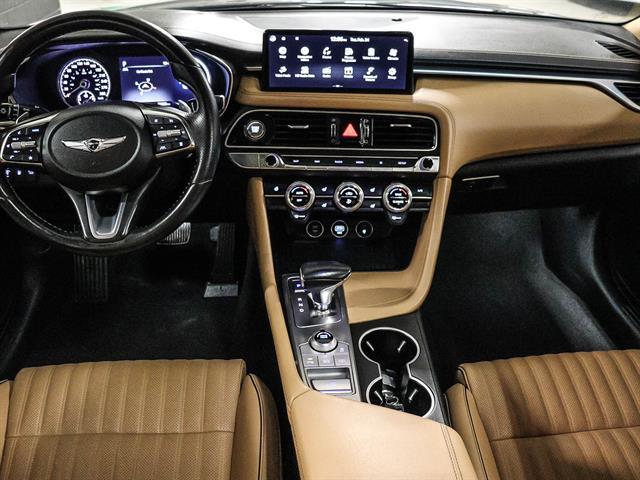 - Éclairage d'approche intégré aux rétroviseurs avec projection du logo « Genesis »