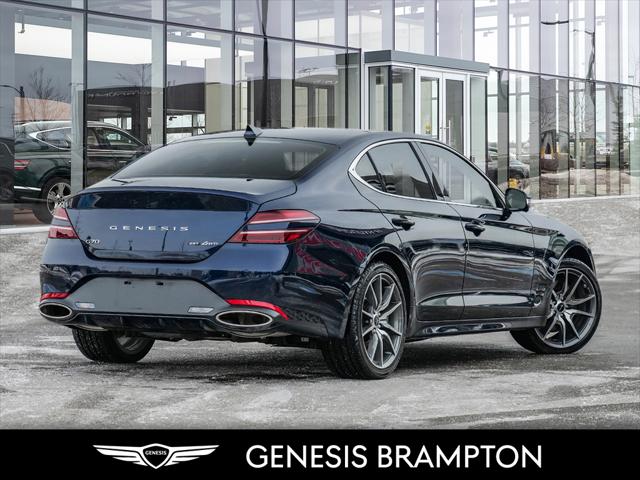 GENESIS CERTIFIED PRE OWNED VEHICLE ENJOY SPECIAL RATES STARTING FROM 2.99% AND A COMPREHENSIVE 191 POINT INSPECTION PLUS A COMPLIMENTARY 1 YEAR OR 20 000 KMS EXTENDED POWERTRAIN WARRANTY ON TOP OF WHAT IS REMAINING OF FACTORY WARRANTY AS A BENEFIT OF GENESIS CERTIFIED PRE OWNED VEHICLE. BENEFITS OF OWNING A GENESIS - 5 years/100 000km scheduled maintenance on us from in service date a loaner vehicle will be provided while your vehicle is in service* - At home service for your scheduled maintenance. We will come to your place and pick up/drop off the vehicle for you* heres why you should buy a 2025 Genesis G70 2.5T Prestige (and why it might be the perfect luxury-sport sedan for you) and why you should pull the trigger now. What you get with the 2025 G70 2.5T Prestige Performance + Efficiency Youre getting a turbocharged 2.5 L 4-cylinder that makes 300 hp and 311 lb-ft of torque under the hood. Thats more than enough power for daily driving highway passes and spirited runs without the fuel penalty (or insurance costs) of a V6. Its a very balanced package: plenty of punch but still efficient and manageable. ??-Driver-Focused Luxury & Comfort (Prestige Trim Perks) The Prestige trim isnt just a badge. It really levels up the G70 into a more refined comfortable and feature-rich sedan heres what you get: Genuine leather upholstery (vs. basic leatherette). Ventilated (and heated) front seats excellent for Toronto winters and summer heat. Wide sunroof opens up the cabin and gives that premium-sedan feel. Wireless phone charging convenience built in. Premium Lexicon audio system great sound quality for music podcasts road trips. Power-folding mirrors parking sensors and optional surround-view / blind-spot cameras depending on configuration useful for city parking tight garages Toronto winters. Full suite of modern safety / driver-assist features adaptive cruise lane-keep blind-spot monitoring collision mitigation etc. so you get both luxury and peace of mind. PERFORMANCE AUTO GROUP : Genesis Brampton is a proud member of the Performance Auto Group (PAG) where every guest is entitled to the same great Performance Experience. Performance Auto Group's mission is to make car buying easy. We are passionate about innovating so that your experience in any of our 43 dealerships is quick and enjoyable. You'll enjoy working with our friendly teams who are always available to help you make an informed decision. Purchase confidently with our industry-leading transparency tools that provide unprecedented information about the history and condition of our cars. We invite you to experience the difference - at Performance Auto Group.