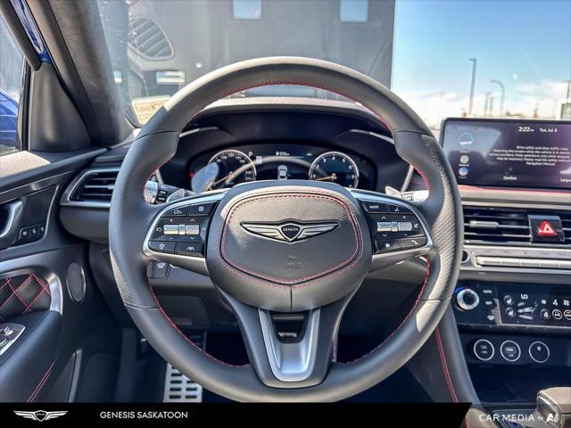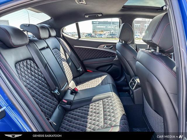 Our G70's trim level is 3.3T Sport. The interior radiates athletic luxury with deeply contoured Nappa leather sport seats featuring quilting and ventilation a sunroof a heated leather steering wheel and a suede headliner that heightens the sense of refinement. A 10.25-inch navigation touchscreen with split-screen capability anchors the cabin seamlessly integrating Apple CarPlay Android Auto and Genesis Connected Services while the 15-speaker Lexicon Quantum Logic Surround system fills the space with concert-level sound. Premium touches such as a power tilt-and-telescoping steering column memory settings for the driver and Smart Cruise Control with Stop & Go enhance daily driving comfort. Safety and confidence are built in with a suite of advanced technologies including Blind-Spot Collision-Avoidance Forward Collision-Avoidance with Pedestrian Detection an Aerial View Camera System and Highway Driving Assist for effortless control. This vehicle has been upgraded with the following features: Premium Audio Hud Sunroof 360 Camera Power Trunk Navigation Cooled Seats.