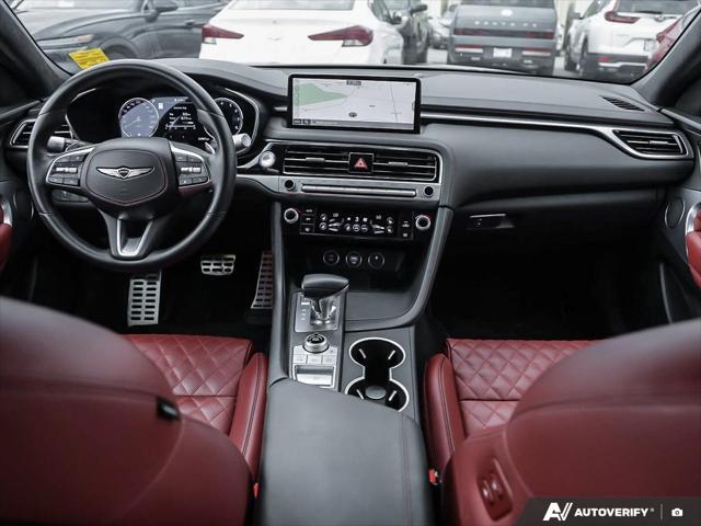 Step into a world of refined power and sophistication with the 2024 Genesis G70 3.3T Sport. This used luxury vehicle with its striking silver exterior and bold red Nappa leather interior is designed for those who appreciate the finer things in life. The 3.3L 6-cylinder engine paired with an 8-speed automatic transmission delivers an exhilarating drive while the all-wheel-drive system ensures confidence in any condition.