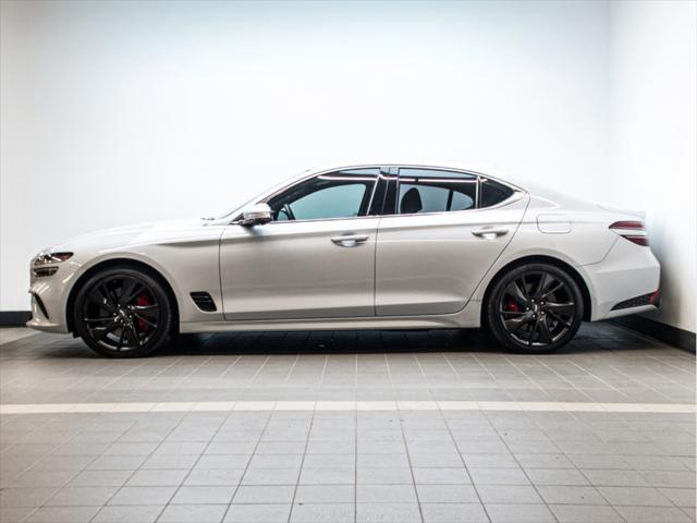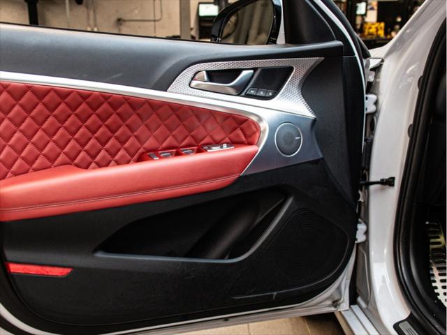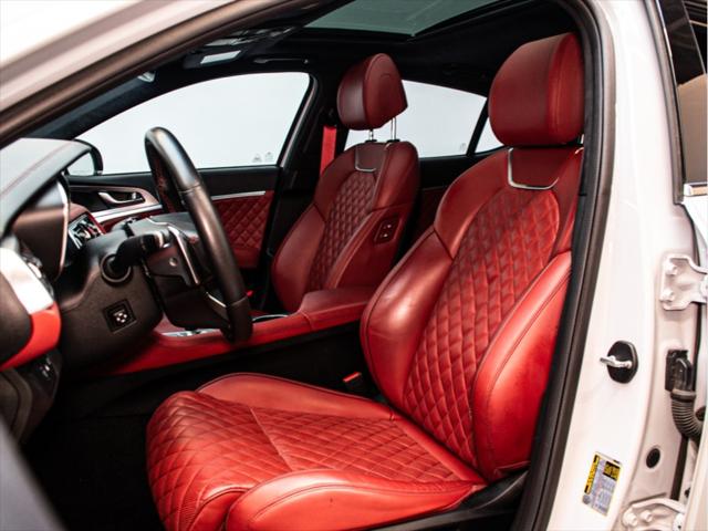 Moteur et Performance Moteur V6 biturbo de 3 3 L à essence Puissance : 365 chevaux à 6 000 tr/min Couple : 376 lb-pi à 1 300–4 500 tr/min Transmission automatique à 8 rapports avec palettes au volant Traction intégrale (AWD) Suspension à commande électronique Freins haute performance Brembo Sélecteur de modes de conduite (Éco Confort Sport Sport+) Contrôle de départ (Launch Control) Consommation (estimée) Ville : 13 3 L/100 km Route : 9 7 L/100 km Combinée : 11 7 L/100 km Type de carburant : Super (essence premium) Éléments extérieurs Roues en alliage de 19 po (design sport) Phares et feux arrière quadruples à DEL Calandre sport avec fini chrome foncé Toit ouvrant électrique Coffre intelligent mains libres Rétroviseurs extérieurs chauffants et repliables électriquement Intérieur et confort Sellerie en cuir Nappa Siège du conducteur à 16 réglages électriques Siège du passager à 12 réglages électriques Sièges avant chauffants et ventilés Sièges arrière chauffants Volant chauffant Garnitures intérieures en aluminium Climatisation automatique à deux zones Éclairage dambiance intérieur Infodivertissement et connectivité Écran tactile de 10 25 po Navigation avec circulation en temps réel Apple CarPlayMC et Android AutoMC Système audio haut de gamme Lexicon à 15 haut-parleurs Chargeur sans fil pour téléphone intelligent Tableau de bord numérique 3D de 12 3 po Sécurité et aide à la conduite Assistance à la conduite sur autoroute Assistance à lévitement de collision dans les angles morts Assistance à la prévention de collision frontale (piéton cycliste intersection) Assistance à lévitement de collision transversale arrière Caméra à vue panoramique (360°) Régulateur de vitesse intelligent avec arrêt/démarrage Assistance au maintien et au suivi de voie Avertisseur de distance de stationnement (avant et arrière) Dimensions Longueur : 4 685 mm Largeur : 1 850 mm Hauteur : 1 400 mm Empattement : 2 835 mm Volume du coffre : 297 L