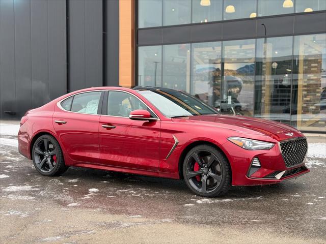 Introducing this 2021 Genesis G70. Expressing power that is forceful yet never feels forced. Engineered to excel not just on paper but on pavement. Equipped to entertain and inform. Protect and connect. Designed in every aspect to celebrate the pure unbridled fun of sporty driving. This low mileage sedan has just 43 335 kms. It's havana red in colour . It has a 8 speed automatic transmission and is powered by a smooth engine. It may have some remaining factory warranty please check with dealer for details.