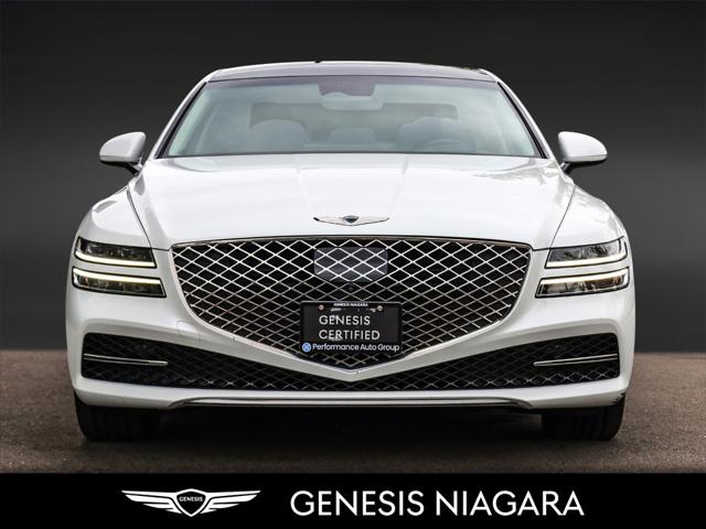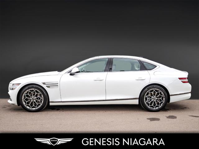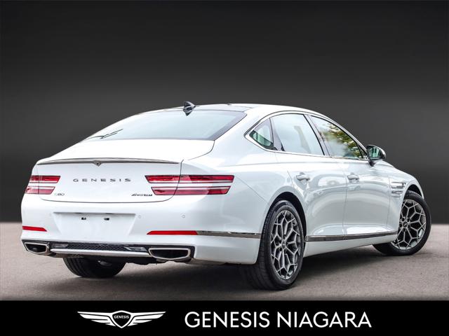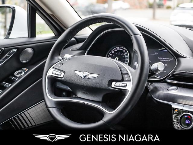 This 2023 G80 2.5T Advanced is a great value with the 2.5T Engine Option. This G80 is powered by a 2.5 Liter Turbo 4 Cylinder that makes an incredible 300HP and 311ft.lb of torque. Its road presence is made recognizable by the 19'' beautiful alloy wheels with Michelin all-season tires that are equipped on this G80. This vehicle has many nice features such as Adaptive Cruise Control Heads up Display Surround View Monitor Blind-Spot View Monitor Highway Driving Assist Lane Keeping Assist Forward Collision Avoidance 14.5'' touch-screen navigation system Proximity-activated hands-free tailgate opening Heated leather steering wheel Heated and Ventilated front seats Lexicon Sound System All-Wheel Drive (AWD) with Terrain Mode Select 8-speed automatic transmission with steering wheel shift paddles