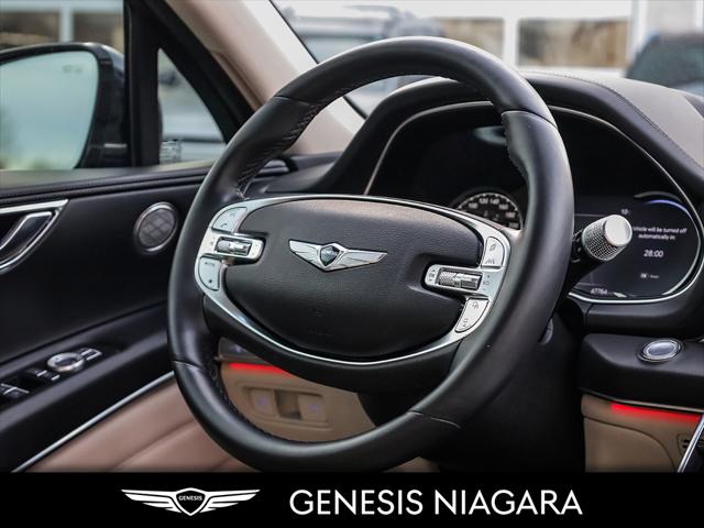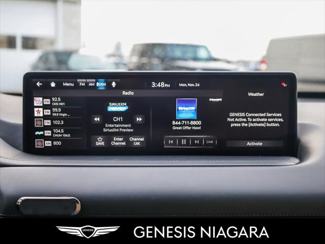 This 2024 GV80 2.5T Advanced is the top of the line package for the 4 cylinder 2.5T option. It represents a great entry point to a GV80 yet is still equipped with a long list of standard features that include the following -2.5L turbocharged inline 4-cylinder engine (300 hp 311 lb-ft) -All-Wheel Drive (AWD) with Terrain Mode Select -8-speed automatic transmission with steering wheel shift paddles -5-passenger seating -20'' aluminum alloy wheels with Michelin all-season tires -Genuine leather seating -Quad LED headlights with LED taillights side repeaters and reverse lights -Panoramic sunroof -Highway Driving Assist High Beam Assist Rear Cross-Traffic Collision-Avoidance Assist Forward Collision-Avoidance Assist and Intelligent Speed Limit Assist -Smart Cruise Control -14.5'' touch-screen navigation system -Head-Up Display (HUD) -Surround View Monitor -Blind-Spot View Monitor (BVM) -Premium Audio with 12 Speakers -Proximity keyless entry with push button start and remote engine start -Proximity-activated hands-free tailgate opening -Wireless charging -Heated leather steering wheel -Heated front seats and rear seats -Ventilated front seats -Rear occupant alert -Three-zone automatic climate control -Self-leveling rear suspension -Genesis Connected Services We are confident your shopping experience with us will be a luxury experience with our ''no pressure'' sales team who are here to help you make the right choice. We are conveniently located at 332 Ontario Street in St.Catharines right off the QEW. We look forward to having you here and experiencing the Genesis difference. **Free Carproof online! Specialist onsite for all credit approvals!**