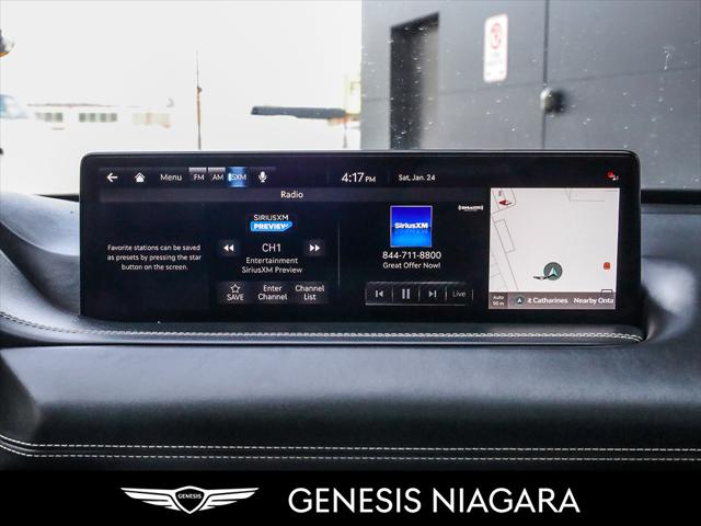 This 2024 GV80 2.5T Advanced is the top of the line package for the 4 cylinder 2.5T option. It represents a great entry point to a GV80 yet is still equipped with a long list of standard features that include the following -2.5L turbocharged inline 4-cylinder engine (300 hp 311 lb-ft) -All-Wheel Drive (AWD) with Terrain Mode Select -8-speed automatic transmission with steering wheel shift paddles -5-passenger seating -20'' aluminum alloy wheels with Michelin all-season tires -Genuine leather seating -Quad LED headlights with LED taillights side repeaters and reverse lights -Panoramic sunroof -Highway Driving Assist High Beam Assist Rear Cross-Traffic Collision-Avoidance Assist Forward Collision-Avoidance Assist and Intelligent Speed Limit Assist -Smart Cruise Control -14.5'' touch-screen navigation system -Head-Up Display (HUD) -Surround View Monitor -Blind-Spot View Monitor (BVM) -Premium Audio with 12 Speakers -Proximity keyless entry with push button start and remote engine start -Proximity-activated hands-free tailgate opening -Wireless charging -Heated leather steering wheel -Heated front seats and rear seats -Ventilated front seats -Rear occupant alert -Three-zone automatic climate control -Self-leveling rear suspension -Genesis Connected Services We are confident your shopping experience with us will be a luxury experience with our ''no pressure'' sales team who are here to help you make the right choice. We are conveniently located at 332 Ontario Street in St.Catharines right off the QEW. We look forward to having you here and experiencing the Genesis difference. **Free Carproof online! Specialist onsite for all credit approvals!**