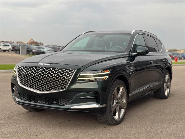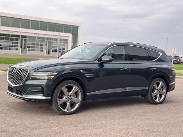 Our GV80's trim level is 3.5T Prestige. This all-wheel drive Genesis GV80 3.5T Advanced comes very well equipped with unique aluminum wheels heated and cooled Nappa leather quilted seats a heated leather steering wheel a large power sunroof wireless device charging power driver and passenger seats distance pacing cruise control and separate rear HVAC controls. It also includes a head-up display unit a 360 surround view camera proximity keyless entry with a useful power rear liftgate front and rear parking sensors blind spot detection with lane keep assist forward collision avoidance and genuine wood trim. This amazing GV80 also has road active noise cancellation power-folding 3rd row seats and a massive 14.5 inch HD touchscreen with integrated navigation Android Auto Apple CarPlay real-time traffic updates and a Lexicon premium audio system plus so much more. This vehicle has been upgraded with the following features: Head Up Display Leather Seats Cooled Seats Sunroof Power Liftgate Wireless Charging Heated Steering Wheel.
