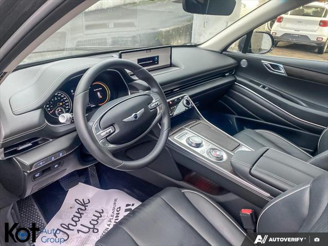2024 Genesis GV80 3.5T AdvancedCertified One Owner Locally Driven Complimentary Maintenance up to 100 000 kmExperience the perfect balance of sophistication performance and innovation in this 2024 Genesis GV80 3.5T Advanced. Locally driven and meticulously cared for by a single owner this SUV delivers the comfort and confidence you expect from Genesis.Under the hood the refined 3.5-litre twin-turbo V6 engine provides effortless power and smooth acceleration complemented by All-Wheel Drive for year-round stability. Inside the cabin surrounds you with modern luxury premium leather seating heated and ventilated seats panoramic sunroof and a 14.5-inch multimedia display with integrated navigation and surround-view camera.This vehicle has been Genesis Certified Inspected ensuring top-tier quality and peace of mind. Plus enjoy No-Charge Scheduled Maintenance up to 100 000 km offering unmatched value and convenience for years to come.Key Highlights:3.5 L Twin-Turbo V6 Engine All-Wheel DriveOne Owner Certified Inspected Locally DrivenPremium Leather Interior with Heated & Ventilated SeatsPanoramic Sunroof 14.5 Touchscreen with NavigationComplimentary Maintenance up to 100 000 km