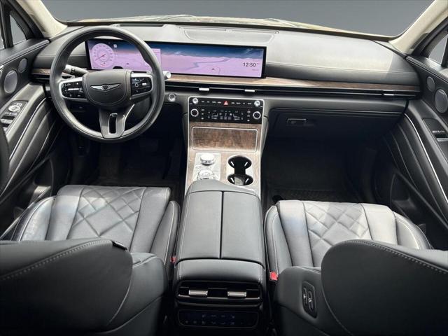 The Genesis GV80 in its sophisticated 3.5T Advanced trim boasts a sleek finish in striking color and offers unmatched performance with its all-wheel-drive (AWD) system. This SUV delivers exceptional handling powered by a dynamic 3.5L 6-cylinder engine. The exterior features include attractive alloy wheels and a bold design that exudes luxury. The spacious interior welcomes you with premium leather seats a luxurious leather steering wheel and inviting leatherette door trim inserts crafted for both comfort and elegance. With seating for 7 this SUV is perfect for family travel or adventures with friends. This model is equipped with state-of-the-art technology featuring a user-friendly navigation system and smart device integration for seamless connectivity on the go. Stay entertained with satellite radio and a top-notch sound system while enjoying the comfort of heated front and rear seats and a scenic sunroof allowing natural light in. Safety is prioritized with a comprehensive technology suite including adaptive cruise control lane assist and advanced brake assist systems ensuring peace of mind on every drive. A heads-up display and automatic parking elevate driving ease while the standard backup camera and parking sensors add convenience to every maneuver. This Genesis GV80 is an excellent choice for discerning families or tech-savvy individuals seeking luxury and advanced features in an SUV. With only 5000 km on the odometer it is practically new and ready for the road. Dont miss the opportunity to experience this luxurious ride. Contact us at the dealership today for more information or to schedule your test drive.
