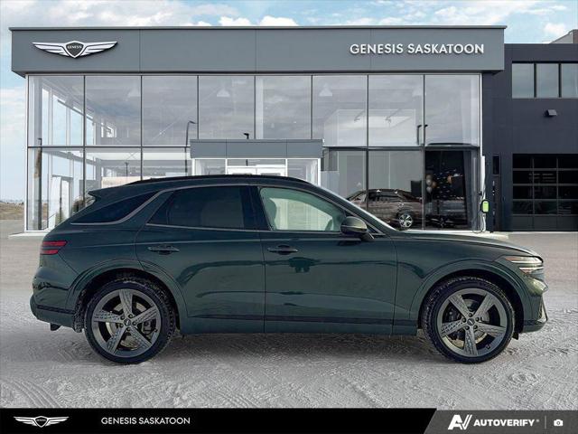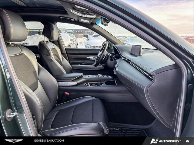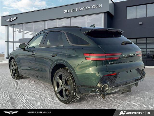 This Genesis GV70 is a premium SUV that sports an urban design to maximize its athletic elegance dynamic driving experience and has an interior that showcases its state?of?the?art technology and futuristic design. For an evolutionary step in luxury performance and technology this 2022 GV70 is an obvious choice. This SUV has 67 385 km. It's Green in colour. It has an Automatic transmission and is powered by a 3.5L V6 24V PDI DOHC Twin Turbo engine.