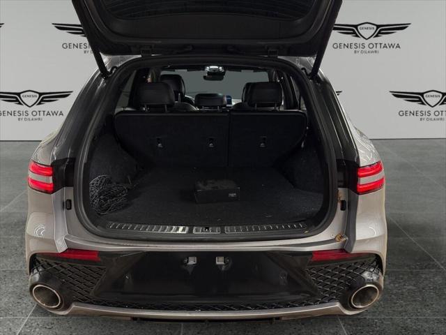 The 2023 Genesis GV70 3.5T Sport Plus AWD in a stunning silver finish offers a remarkable all-wheel-drive experience making it a compelling choice for those seeking performance paired with unparalleled handling. Equipped with a dynamic 3.5L 6-cylinder engine this SUV ensures an exhilarating drive with 375 horsepower ready to conquer the roads. Its exterior radiates elegance complimented by stylish alloy wheels that add a touch of sophistication. Inside passengers will indulge in the luxury of black leather seating enhanced by thoughtful design elements like a heated steering wheel and Leather Door Trim Insert projecting a refined and comfortable atmosphere. Stay connected and confident with cutting-edge technology features such as a crisp navigation system and a heads-up display that keeps key information right in your line of sight. Safety is paramount with accessories like the backup camera automatic parking lane assist and adaptive cruise control all designed to enhance your driving experience. Perfect for the tech-savvy driver who values performance and luxury the GV70 3.5T Sport Plus AWD offers both convenience and style. Its premium features like smart device integration and cooled and heated seats ensure comfort year-round. Reach out to our dealership today to learn more about this remarkable SUV and elevate your driving enjoyment to new heights.