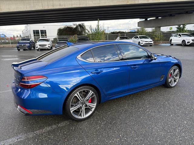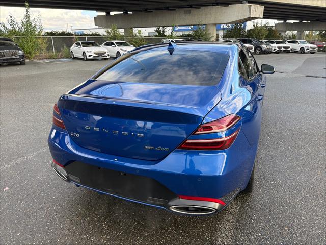 Low Mileage Sport Package Sunroof Cooled Seats HUD Leather Seats!Our G70's trim level is 3.3T Sport. Rev-up your driving experience with this dynamic all-wheel drive Genesis G70 3.3T Sport that comes with heated and cooled Nappa quilted leather seats a sunroof head up display a heated leather steering wheel proximity keyless entry and a large touchscreen infotainment system that's paired with a premium Lexicon audio system built-in navigation Apple CarPlay and Android Auto. Additional features in this luxurious sedan include a microfibre suede headliner exclusive aluminum wheels blind spot detection with lane keep assist and accident avoidance 360 surround view monitor front and rear parking sensors quad LED headlights distance pacing cruise control and subtle dark chrome exterior accents plus much more. This vehicle has been upgraded with the following features: Sport Package Sunroof Cooled Seats Hud Leather Seats Premium Audio Navigation.At Genesis Langley we're happy to bring any of our new pre-owned or ex-demo vehicles right to your door with our Genesis Langley at home test-drive service!