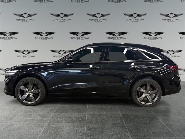 The 2023 Genesis GV70 3.5T Sport AWD is a bold black SUV designed to deliver exhilarating performance with its robust 3.5L 6-cylinder engine and refined automatic transmission. Its all-wheel-drive system ensures superb handling and stability perfect for those who crave a dynamic driving experience. This sophisticated vehicle boasts alluring black exterior alloys elegant lines and a striking presence on the road. Inside the black leather upholstery and aluminum instrument panel create an opulent atmosphere. The spacious cabin is packed with features like power windows power seats and a panoramic sunroof that opens up to the sky enhancing every journey. Advanced technology takes center stage with smart device integration a premium navigation system and a user-friendly heads-up display that provides easy access to vital driving information. Safety and comfort are at the forefront with features such as backup camera lane assist adaptive cruise control and parking sensors ensuring peace of mind. Heated and cooled seats a heated steering wheel and a superior sound system make every trip supremely comfortable. Perfect for adventurous families or anyone who enjoys driving in style this Genesis GV70 is ready to elevate your everyday travel. Contact our dealership today to learn more and make this exceptional SUV yours.