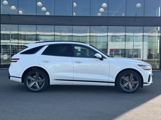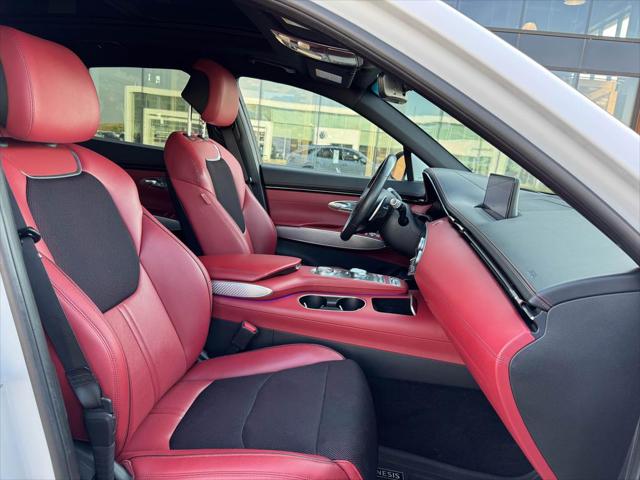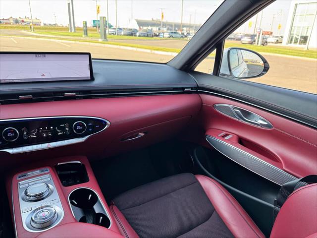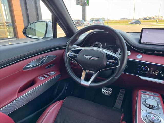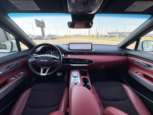 Our GV70's trim level is 3.5T Sport. This Genesis GV70 3.5T Sport comes loaded with a sport tuned all-wheel drive powertrain heads up display an exterior sport appearance package power-heated and cooled leather sport seats heated rear seats a heated leather steering wheel proximity keyless entry w/fingerprint authentication a useful power liftgate remote engine start Quad LED lighting and wireless device charging. This luxurious SUV also includes a large 14.5 inch HD touchscreen that features built-in navigation Apple CarPlay Android Auto and a premium Lexicon audio system with Genesis Connected Services. Additional premium features include exclusive aluminum wheels a panoramic sunroof blind spot detection with forward collision avoidance highway driving assist II technology distance pacing cruise control lane keep assist front and rear parking sensors plus a useful rear view camera! This vehicle has been upgraded with the following features: Sunroof Premium Audio Leather Seats Cooled Seats Head Up Display Wireless Charging Power Liftgate.