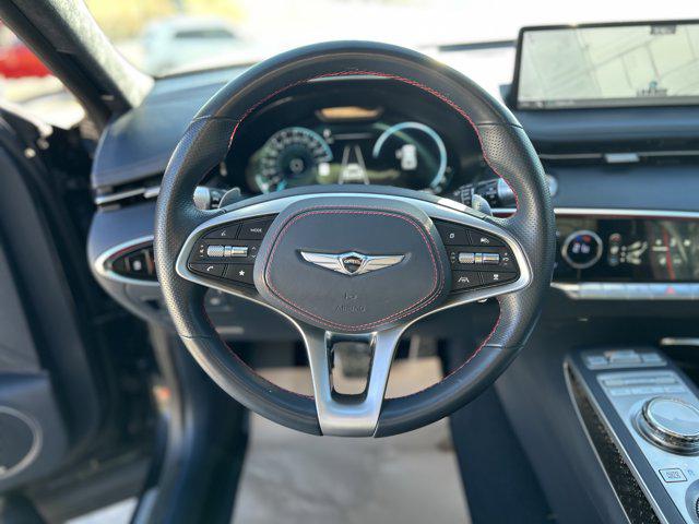 This Genesis GV70 delivers a Twin Turbo Premium Unleaded V-6 3.5 L/212 engine powering this Automatic transmission. VIK BLACK ULTRAMARINE BLUE NAPPA LEATHER SEATING SURFACES Window Grid Antenna.* This Genesis GV70 Features the Following Options *Wheels: 21" x 9.0J Dark Sputtering Aluminum -inc: Sport design Valet Function Trip Computer Transmission: 8-Speed Automatic -inc: shift-by-wire paddle shifters and drive mode select (comfort eco sport sport plus and custom) Transmission w/Oil Cooler Tracker System Tires: 255/40R21 AS Tire Specific Low Tire Pressure Warning Strut Front Suspension w/Coil Springs Steel Spare Wheel.****Payments O.A.C.*The advertised price does not include GST. Discounts may include available manufacturer discounts and/or incentives. Discounts and/or incentives from both the dealership and manufacturer may have certain criteria for eligibility and must be qualified for depending on the nature of the discount and model of vehicle involved. Discounts offered by the manufacturer have discrete legal regulations available on the corresponding manufacturer site. See dealer for all current discount eligibility details. Vehicle data is subject to change without notice. AMVIC Licensed Dealer.