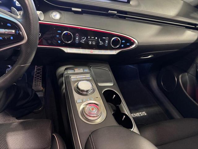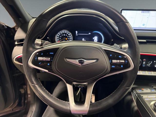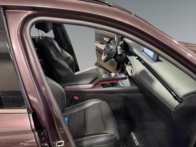 The 2022 Genesis GV70 3.5T Sport in a striking brown hue offers an AWD drivetrain that assures confident handling across diverse driving conditions. It combines sportiness with elegance delivering both agility and comfort. This SUV captivates with its chic exterior featuring dynamic lines and sophisticated alloy wheels. Step inside to be enveloped by a plush black interior boasting top-tier leather seats and aluminum accents that exude luxury and craftsmanship. Equipped with cutting-edge technology the GV70 includes a user-friendly navigation system a crisp heads-up display and seamless smart device integration. Safety and convenience are elevated with features like adaptive cruise control lane assist and parking sensorsmaking each journey safer and more enjoyable. For those who value refinement and advanced features the Genesis GV70 is a perfect choice. Whether you're navigating urban landscapes or enjoying weekend getaways this vehicle has something to offer every driver. Contact us today to explore this exceptional vehicle further.