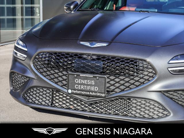 The 2022 G70 Sport Launch Edition was a limited production to ''launch'' the changes to the G70 for 2022. Only 30 of these were brought to Canada. This example was sold buy us and has no come back looking for a new owner. Here is a list of features this car has.  - Front and Rear parking assistance sensors - Rain-sensing wipers - Power-folding  auto-dimming  heated side mirrors with Genesis logo puddle lamps - Power tilt-and-telescopic steering column - Drivers Integrated Memory System + Power Driver and Passenger seat adjustment - Ventilated front seats  - Wireless charging pad - 15-speaker Lexicon surround sound audio system - Dual exhaust system with oval outlets - 16-way Power Driver Seat including Power Side Bolster & Cushion Extension - Head-Up Display (HUD) - 3.3L twin-turbocharged V6 engine with 365hp and 376 lb. ft. of torque - Variable Gear Ratio (VGR) steering rack - Sport-tuned Electronically Control Suspension - Limited Slip Differential (LSD) - Brembo braking system - Nappa leather seating surfaces with sport quilting - Microfibre suede headliner - Sport 19'' aluminum alloy wheels with high-performance summer tires - Alloy pedals - Variable Exhaust Valve - Surround view monitor with Blind Spot View Monitor - Front passenger seat walk-in device - Acoustic Laminated Glass (Front)  We are confident your shopping experience with us will be a luxury experience  with our ''no pressure'' sales team who are here to help you make the right choice. We are conveniently located at 342 Ontario Street in St.Catharines  right off the QEW. We look forward to having you here and experiencing the Genesis difference. **Free Carproof online! Specialist onsite for all credit approvals!*