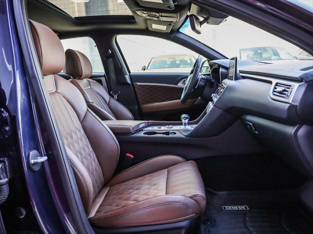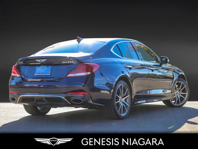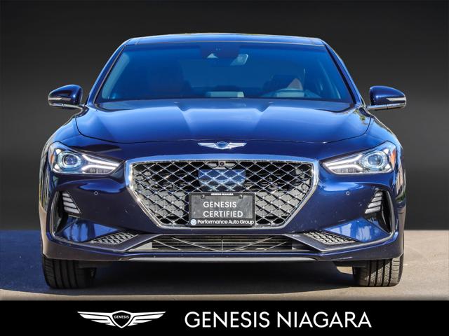 This 2020 G70 3.3T Prestige is extremely well equipped with necessities such as All Wheel Drive Remote Start Heated Steering Wheel Heated Seats Ventilated Seats Heads Up Display 15-speaker Lexicon surround sound audio system Memory Seats Power Adjustable Steering Wheel Power Sunroof and much more. This G70 is powered by a 3.3 Litre Twin Turbo V6 that makes an incredible 365HP and 376ft.lb of torque at a low RPM of 1300. This G70 comes equipped with stunning 19 Chrome/Black Alloy Wheels with All Season Tires. If any of the above isn't enough to have you come see the beauty of this one of a kind sedan then hopefully all the equipped safety features such as the Adaptive Cruise Control Highway Driving Assist Lane Keeping Assist Forward Collision Avoidance and Rear Collision Warning will be. We are confident your shopping experience with us will be a luxury experience with our ''no pressure'' sales team who are here to help you make the right choice. We are conveniently located at 342 Ontario Street in St.Catharines right off the QEW. We look forward to having you here and experiencing the Genesis difference. **Free Carproof online! Specialist onsite for all credit approvals!*