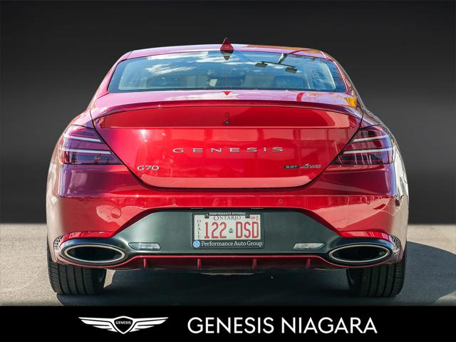 This 2022 G70 3.3T Advanced represents great value in a sports sedan with plenty of power and features that include. - Front and Rear parking assistance sensors - Rain-sensing wipers - Power-folding auto-dimming heated side mirrors with Genesis logo puddle lamps - Power tilt-and-telescopic steering column - Drivers Integrated Memory System + Power Driver and Passenger seat adjustment - Ventilated front seats heated rear seats - Wireless charging pad - 15-speaker Lexicon surround sound audio system - Dual exhaust system with oval outlets - 14-way Power Driver Seat - Power trunk lid - 3.3L twin-turbocharged V6 engine with 365hp and 376 lb. ft. of torque - Variable Gear Ratio (VGR) steering rack - Sport 19'' aluminum alloy wheels - Front passenger seat walk-in device - Acoustic Laminated Glass (Front) We are confident your shopping experience with us will be a luxury experience with our ''no pressure'' sales team who are here to help you make the right choice. We are conveniently located at 342 Ontario Street in St.Catharines right off the QEW. We look forward to having you here and experiencing the Genesis difference. **Free Carproof online! Specialist onsite for all credit approvals!*