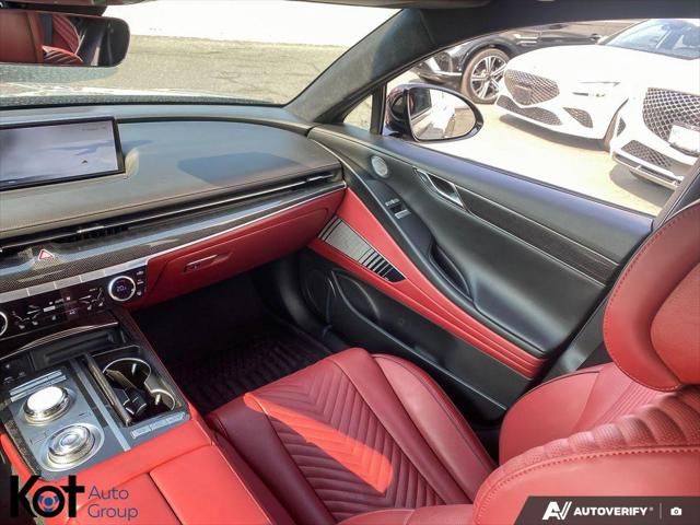 Discover refined luxury and confidence in this 2024 Genesis G80. Locally driven with just 19 000 km this executive sedan has been professionally maintained certified inspected and meticulously cared for. To add even greater value it includes complimentary maintenance up to 100 000 km ensuring peace of mind and worry-free ownership. This G80 has also never been smoked in preserving a clean and fresh interior.Step inside and enjoy premium comfort and cutting-edge technology including:Leather seating with heated and ventilated front seats for year-round comfortAdvanced safety features such as Blind-Spot Collision Avoidance Lane Keeping Assist and Smart Cruise ControlSurround View Monitor and Parking Sensors for effortless maneuvering12.3 infotainment display with navigation Apple CarPlay & Android AutoPremium audio system delivering rich sound qualityPanoramic sunroof to brighten every driveOn the road the Genesis G80 blends smooth performance with confident handling creating a driving experience that is both dynamic and refined.This rare combination of low mileage complimentary long-term maintenance and luxury features makes this G80 an outstanding choice for discerning drivers available now at Genesis Victoria.