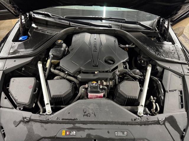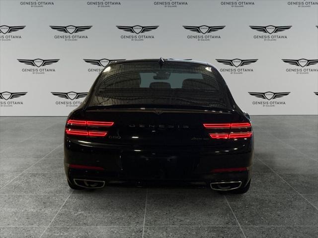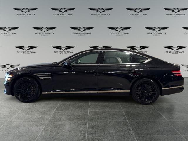 Introducing the 2021 Genesis G80 3.5T Prestige AWD  a luxurious black sedan that's engineered for ultimate comfort and power. With an AWD drivetrain and automatic transmission  this vehicle assures you of a smooth and controlled driving experience  no matter the conditions.  The striking black exterior of the G80 is complemented by sophisticated alloy wheels and a sleek silhouette  perfect for those who enjoy a classy yet assertive presence on the road. Inside  youll find an equally stunning black interior adorned with premium leather seats and leatherette door trim  creating a space of elegance and relaxation.  The advanced technology in this Genesis G80 includes a heads-up display  a responsive navigation system  and a smart device integration  ensuring you stay connected on your journey. Safety features like lane assist  brake assist  and adaptive cruise control provide peace of mind  while automatic parking and parking sensors add an extra layer of convenience in tight spots.  For those who appreciate luxury and innovation  the Genesis G80 3.5T is a prime choice. Experience heated and cooled seats  a sophisticated leather steering wheel  and a panoramic sunroof that floods the cabin with natural light. Perfect for business professionals or anyone seeking refinement and power in a sedan  contact our dealership today for more information!