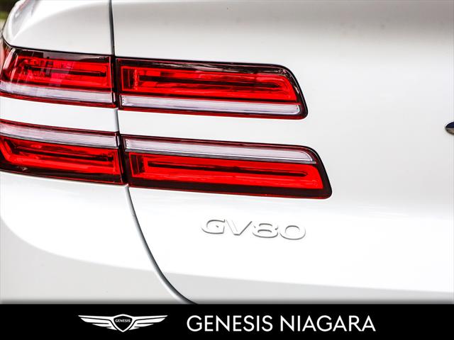 This 2024 GV80 2.5T Advanced is the top of the line package for the 4 cylinder 2.5T option. It represents a great entry point to a GV80 yet is still equipped with a long list of standard features that include the following  -2.5L turbocharged inline 4-cylinder engine (300 hp  311 lb-ft) -All-Wheel Drive (AWD) with Terrain Mode Select -8-speed automatic transmission with steering wheel shift paddles -5-passenger seating -20'' aluminum alloy wheels with Michelin all-season tires -Genuine leather seating -Quad LED headlights with LED taillights  side repeaters  and reverse lights -Panoramic sunroof -Highway Driving Assist  High Beam Assist  Rear Cross-Traffic Collision-Avoidance Assist  Forward Collision-Avoidance Assist  and Intelligent Speed Limit Assist -Smart Cruise Control -14.5'' touch-screen navigation system -Head-Up Display (HUD) -Surround View Monitor -Blind-Spot View Monitor (BVM) -Premium Audio with 12 Speakers -Proximity keyless entry with push button start and remote engine start -Proximity-activated hands-free tailgate opening -Wireless charging -Heated leather steering wheel -Heated front seats and rear seats -Ventilated front seats -Rear occupant alert -Three-zone automatic climate control -Self-leveling rear suspension -Genesis Connected Services  We are confident your shopping experience with us will be a luxury experience  with our ''no pressure'' sales team who are here to help you make the right choice. We are conveniently located at 332 Ontario Street in St.Catharines  right off the QEW. We look forward to having you here and experiencing the Genesis difference. **Free Carproof online! Specialist onsite for all credit approvals!**